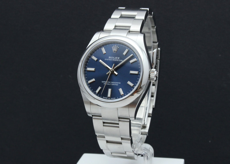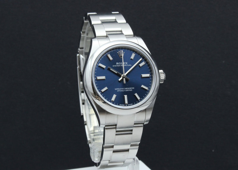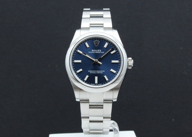 Lähes uudenveroinen Rolex Oyster Perpetual 31 277200 sinisellä sunburst taululla. Kello on ostettu uutena syyskuussa 2025, joten valmistajan takuuta jäljellä 9/2030 asti. Mukaan boksit, manuaalit, hangtagit ja takuukortti.
