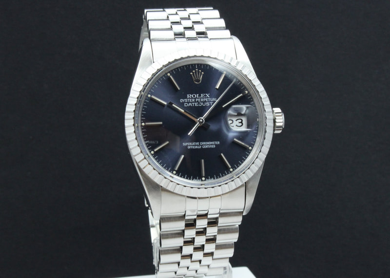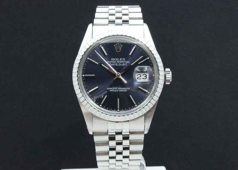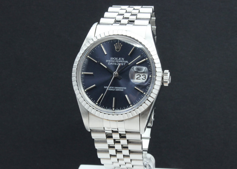 Hyväkuntoinen Rolex Datejust 16030 sinisellä taululla, joka on 9.88mil sarjaa (1987) ja ostettu uutena Suomesta joulukuussa 1987. Kellossa tarkasti käyvä 3035 automaattikoneisto, joka on täyshuollettu RSC-huollossa 2022 (Rolex Service Center). Ranneke 62510H, claspleimalla J (1985) ja 555 endlinkeillä. Rannekkeessa pientä venymää, kellotaulu ja osoittimet ovat tritiumosia. Mukaan boksit, manuaalit, kalenteri, hangtagit, alkuperäinen takuutodistus ja RSC-huoltotodistus 2022.