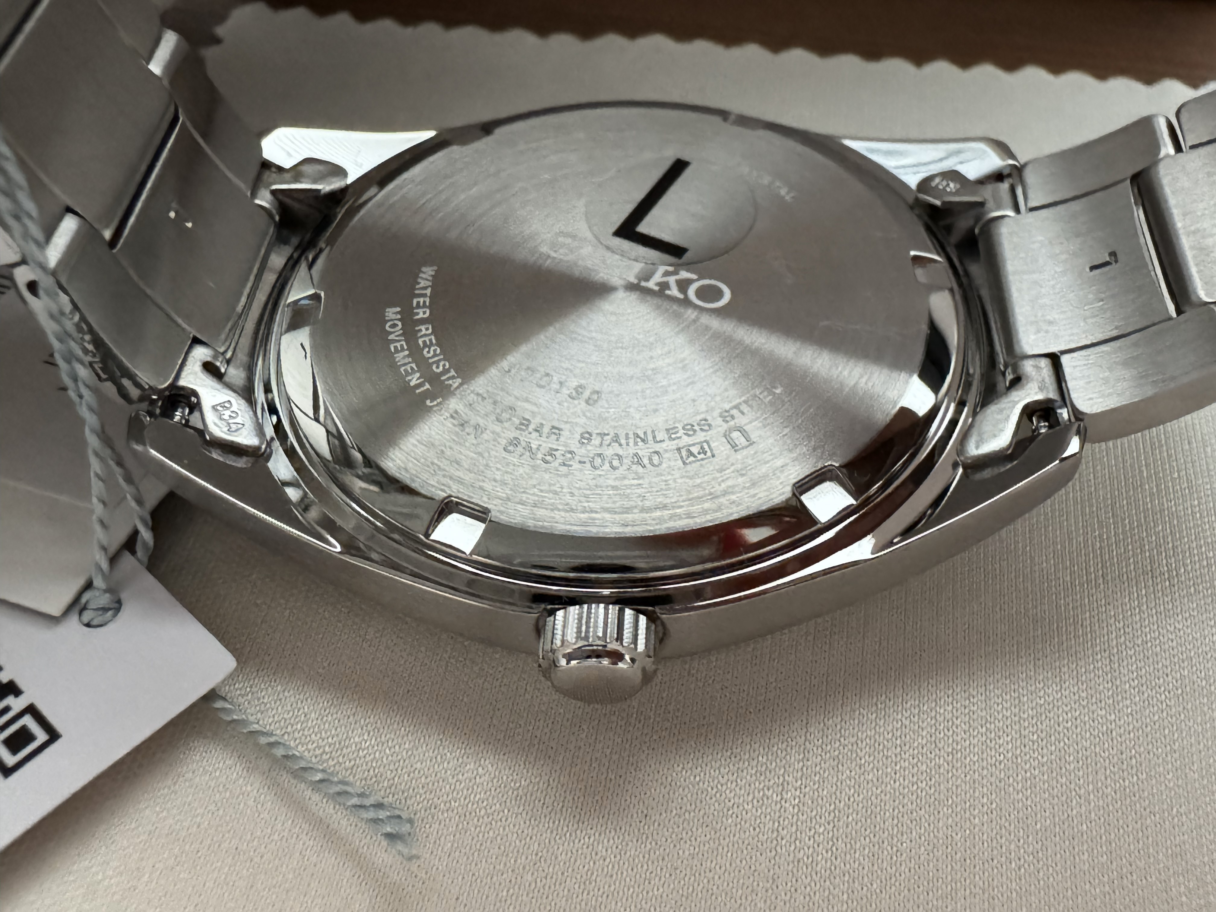 Käyttämätön Seiko "Lohi", tägit paikallaan. Mukaan kotelo + lappuset jotka tulivat kellon mukana.