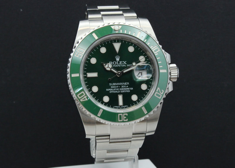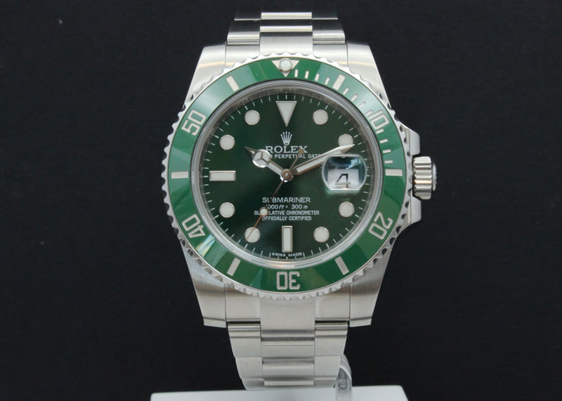Hyväkuntoinen ja erittäin haluttu tuotannosta poistunut klassikko Rolex Submariner Date 116610LV vihreätauluinen- ja kehäinen ''HULK'' Mark 1 taululla. Kello on ostettu uutena marraskuussa 2010 ja sen luotettava 3135 automaattikoneisto on huollettu 2/2025. Mukaan boksi, manuaalit, hangtagit ja takuukortti sekä huoltotodistus 2/2025.