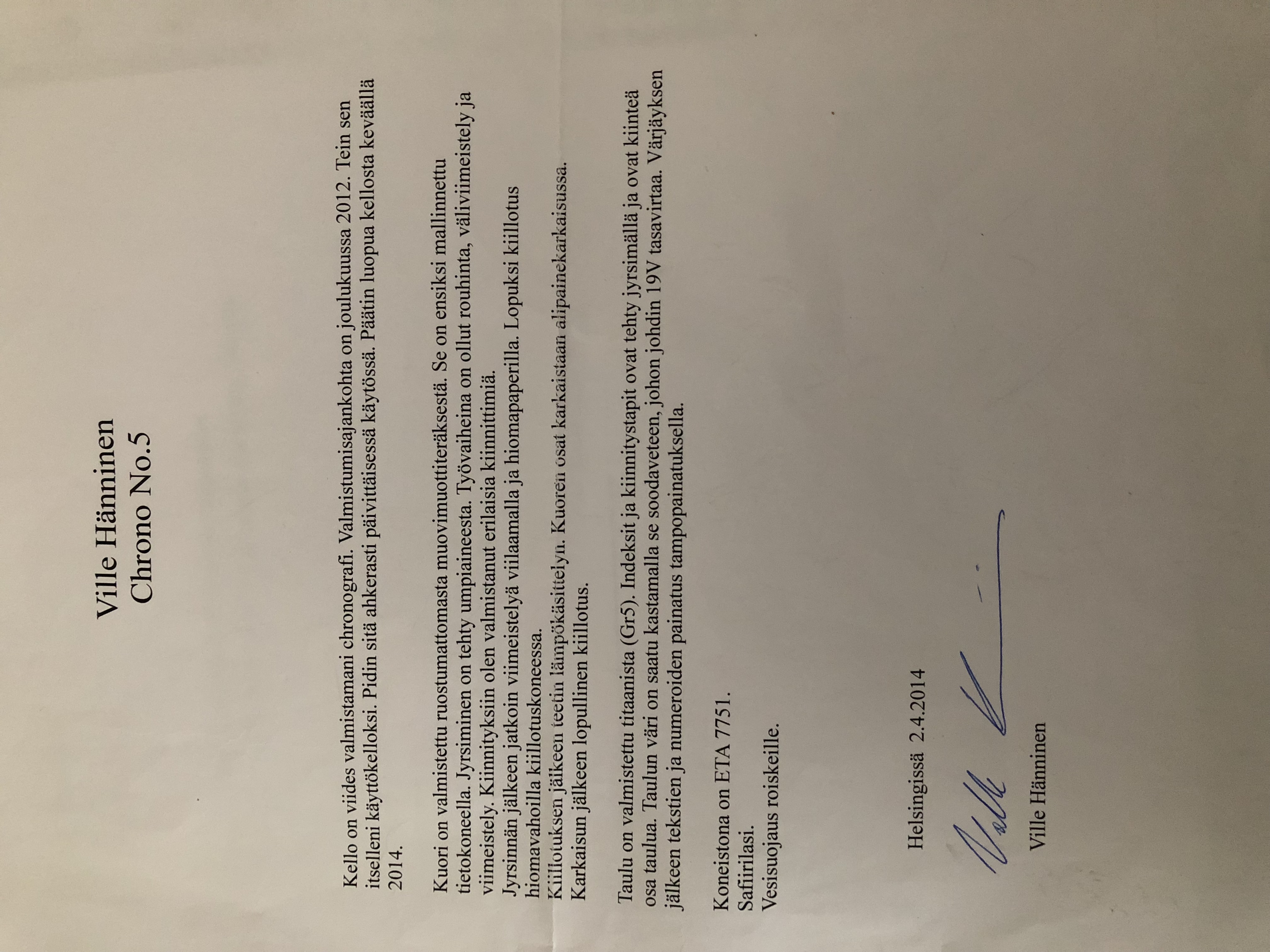 Ville Hänninen Cronoja on valmistettu 6 kappaletta, jokainen uniikilla taululla.