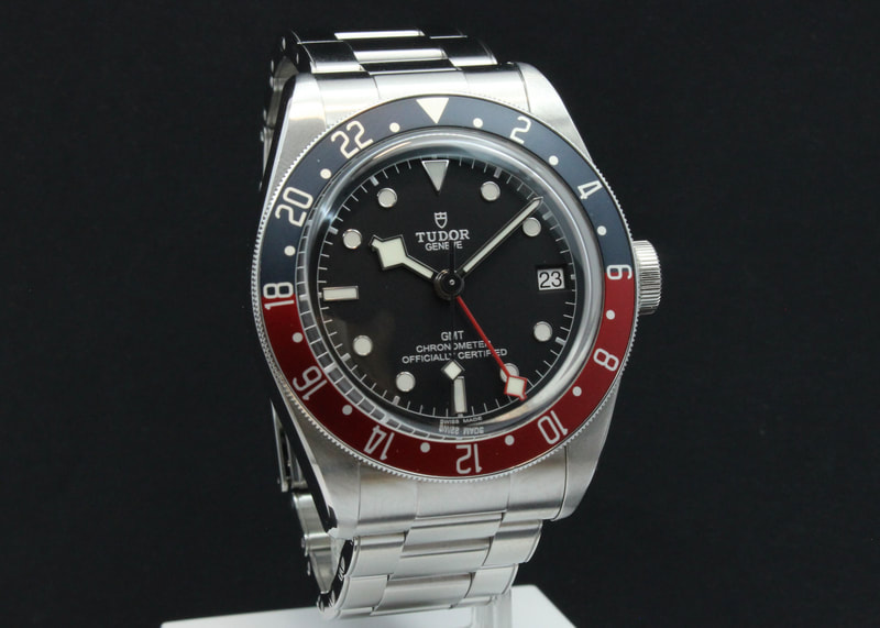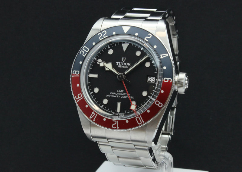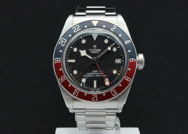 Hienokuntoinen Tudor Black Bay GMT mustalla kellotaululla ja pepsi kehällä. Kello on ostettu uutena maaliskuussa 2023, ja valmistajan takuu voimassa 3/2028 asti. Mukaan boksit, takuukortti ja alkuperäinen ostokuitti. Ovh. 5 040€