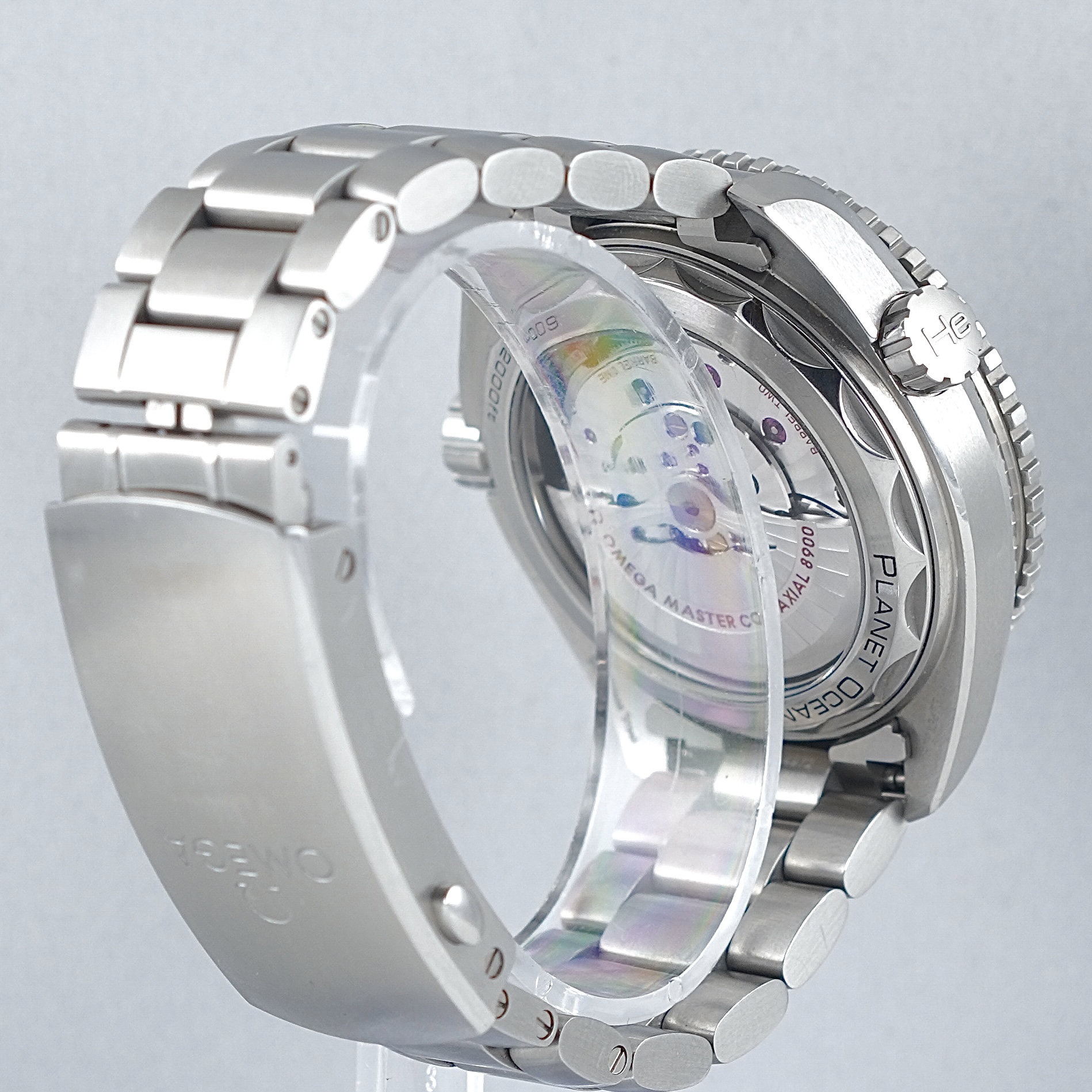 Upea keraamisella kehällä varustettu Planet Ocean, jossa valmistajan alkuperäinen metalliranneke. Mint-kuntoinen yksilö ja kyseessä fullset, jonka takuukortti päivätty 5/2024. Valmistajan takuu voimassa 5/2028 asti. Kellosta löytyy helium-venttiili, keraaminen kehä, päivyri, safiirilasikkeet edessä ja takana ja kronometri-sertifioitu koneisto.