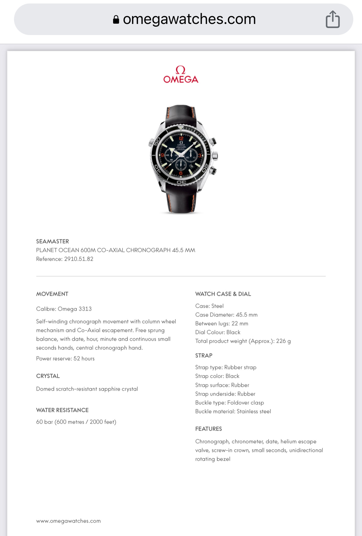 0mega Seamaster Planet Ocean 600M Co-Axial Chronograph 45,5mm