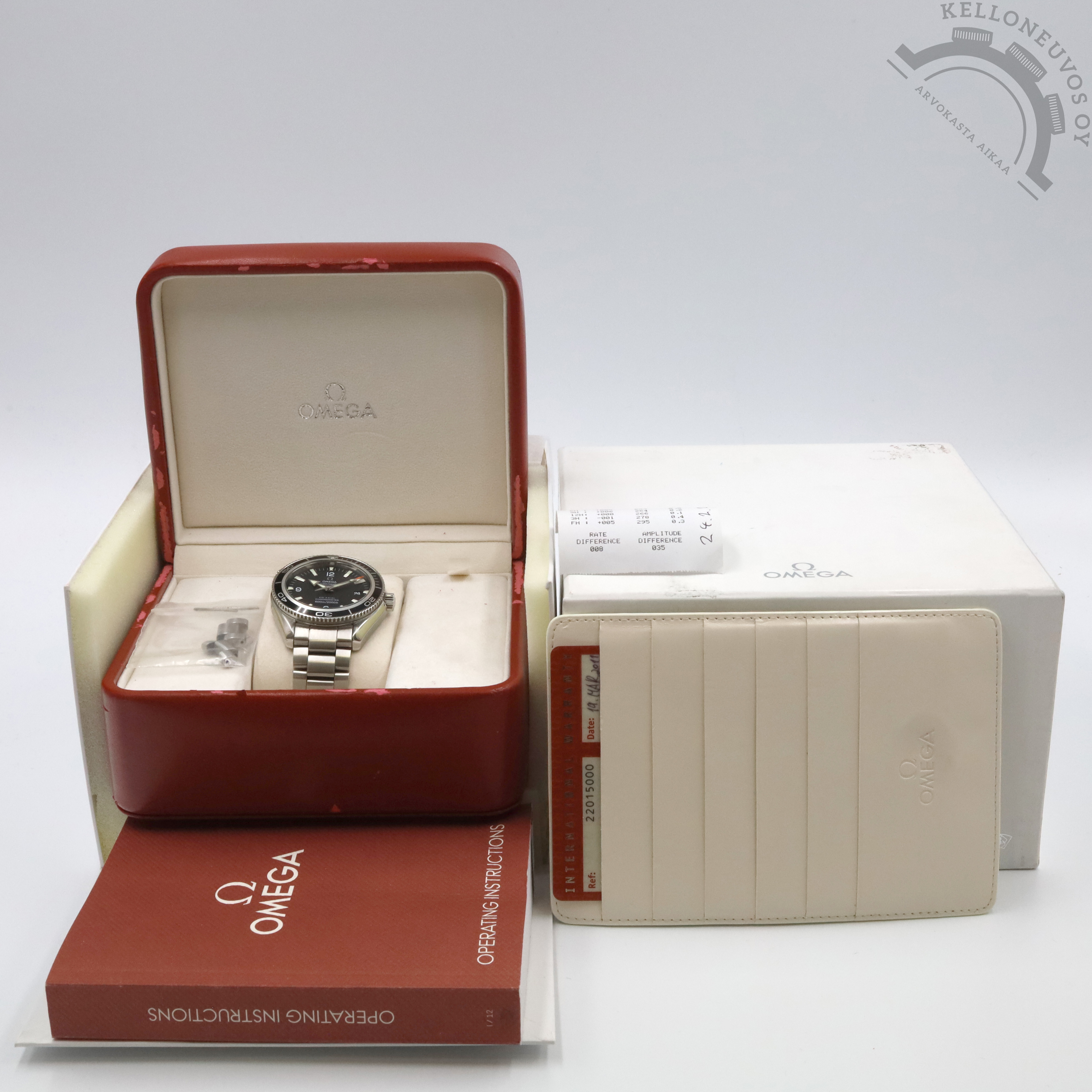Tarjolle ikäisekseen huippukunnossa oleva PO42. Selkeälukuisella mustalla taululla jossa päivyri sekä loistavan lumen omaavat osoittimet ja indeksit. Teräksinen kuori jossa musta sukeltajankehä. Kokonaisuuden kruunaa Omega laadukas teräsranneke. Koneistona toimii Omega 2500 -automaatti jolle luvataan 48h käyntivara. Kelloa seuraa molemmat laatikot, manuaali, rannekkeen jatkopalat, korttitasku, tuoreet käyntitestitulokset sekä alkuperäinen takuukortti. Kellon takuukortti on päivätty 11/2011. Kerrassaan upeakuntoinen yksilö jonka koneiston käyntiarvot myös huippuluokkaa.
