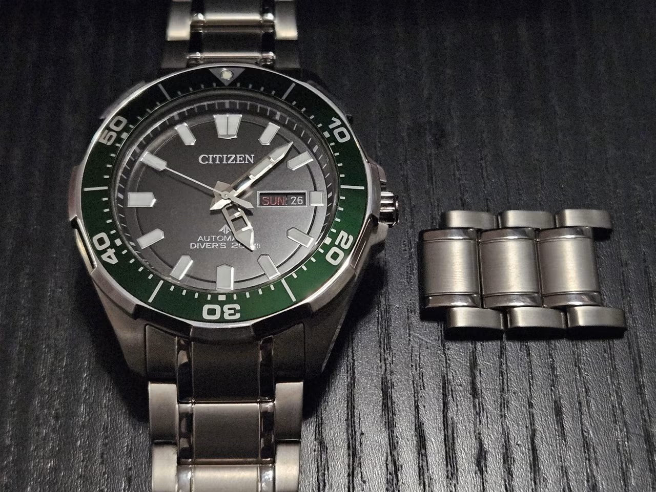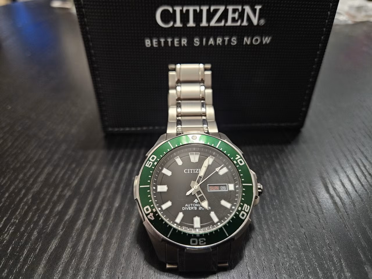 Citizenin titaaninen sukelluskello automaattikoneistolla, tarkka tyyppi NY0071-81E. Ostettu 18.10.2020 suomalaisesta liikkeestä. Vähällä käytöllä ollut ja siistissä kunnossa.