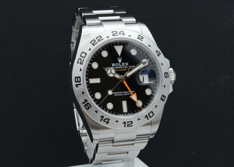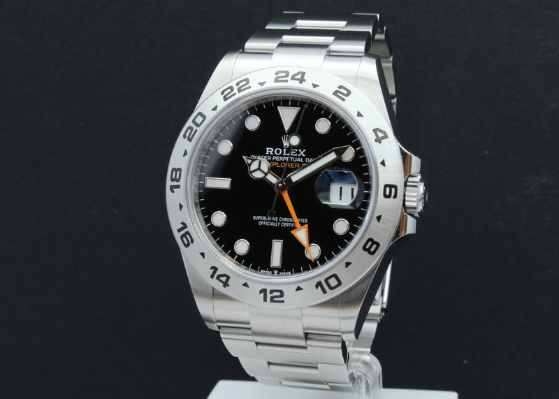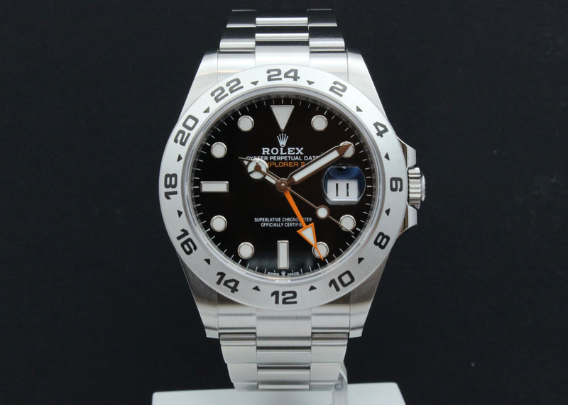Hienokuntoinen Rolex Explorer II 226570, joka ostettu uutena joulukuussa 2021, joten tehdastakuu voimassa 12/2026 asti. Kellossa uusin 3285 automaattikoneisto n. 3 päivän käyntivaralla, joka on huollettu 9/2023 RSC-huollossa takuuseen. Mukaan boksit, manuaalit, hangtagit ja takuukortti. Ovh. 10 800€