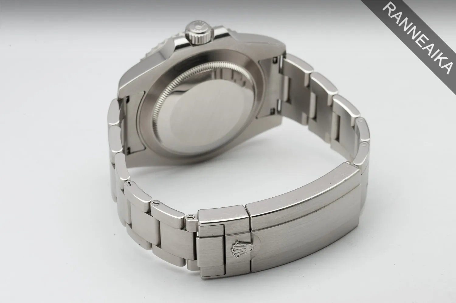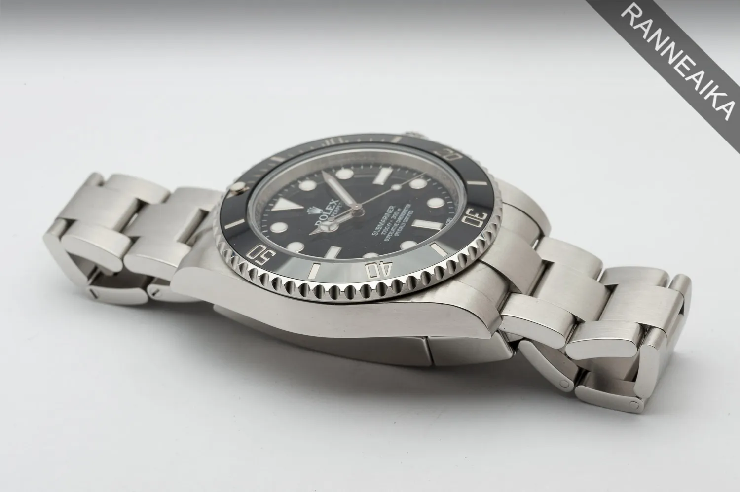 Mustalla keraamisella kehällä varustettu päivyritön ikoni, joka ei esittelyjä juuri kaipaa – todella haluttu teräksinen sportti-Rolex, jollainen tulisi löytyä jokaisen harrastajan kokoelmasta. Tämän leveillä lugeilla varustetun mallin tuotanto päättyi 09/2020 ja se sopii tuhdin kuorensa vuoksi myös paksumpaankin ranteeseen! Kellon suomipaperit on päivätty 08/2016 ja se on huollettu 02/2022. Mukaan molemmat laatikot, korttitasku, kaikki alkuperäiset paperit, kehän muovisuojus sekä dokumentaatio viimeisimmästä huollosta. Tästä erittäin suosittu klassikko-Submariner suoraan ranteeseen!