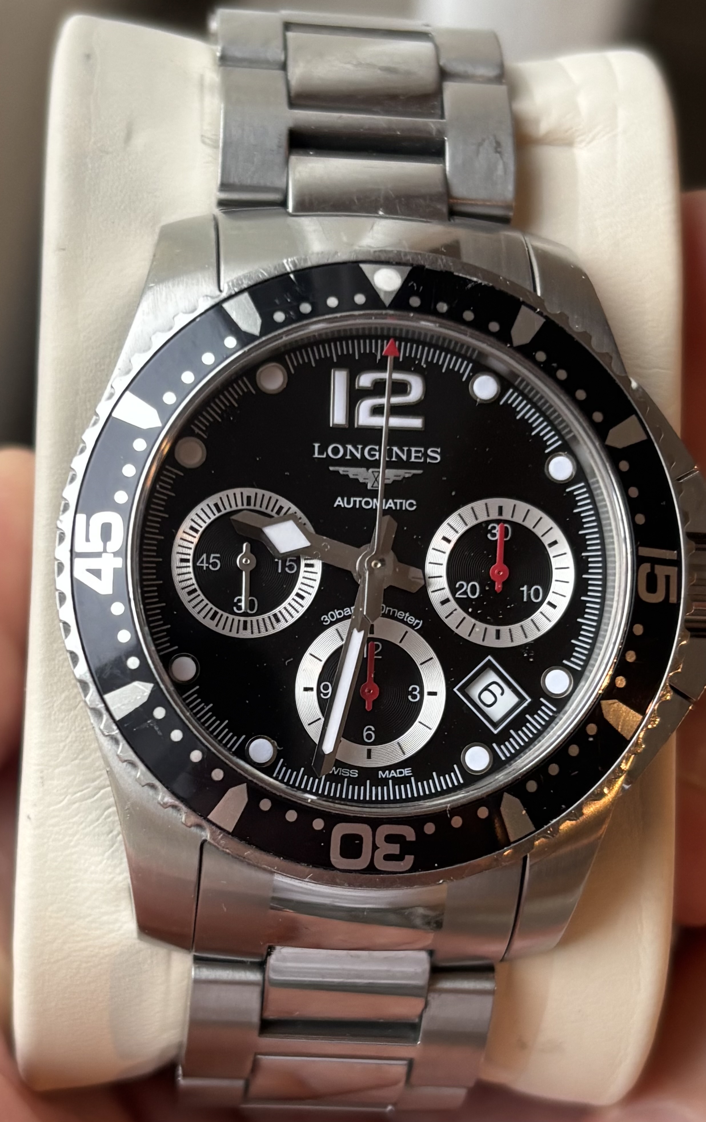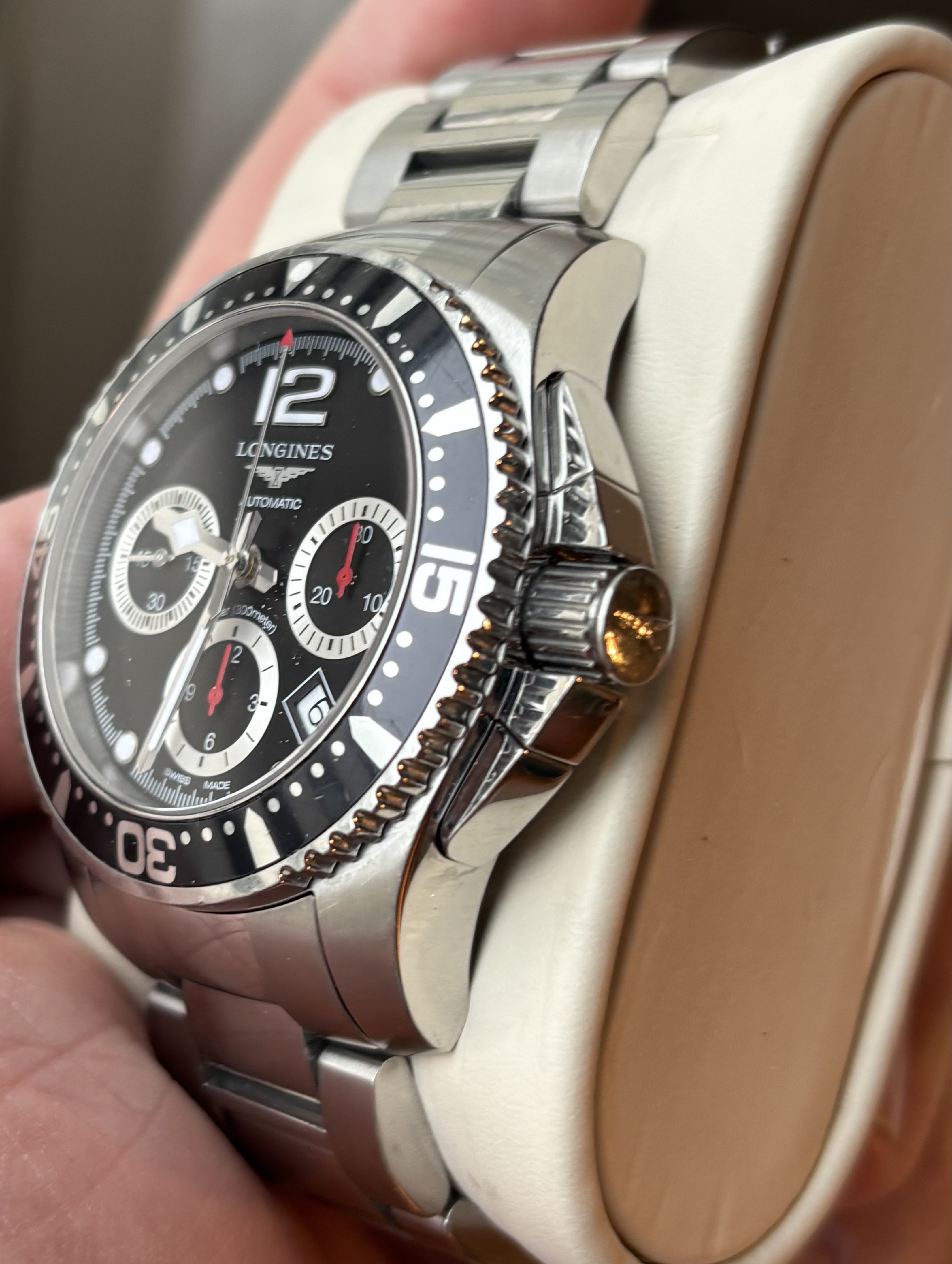 Myydään Longines Hydroconquest chronograph automaatti full set. Vm. 2017 uudemmalla koneistolla, huollettu 11/2025 550€ kelloseppä J. Mikkonen. Hp. 990€ (svh. 2.950€) kaupat f2f Helsinki/Espoo/Vantaa alueella, kello H:gin keskustassa.
