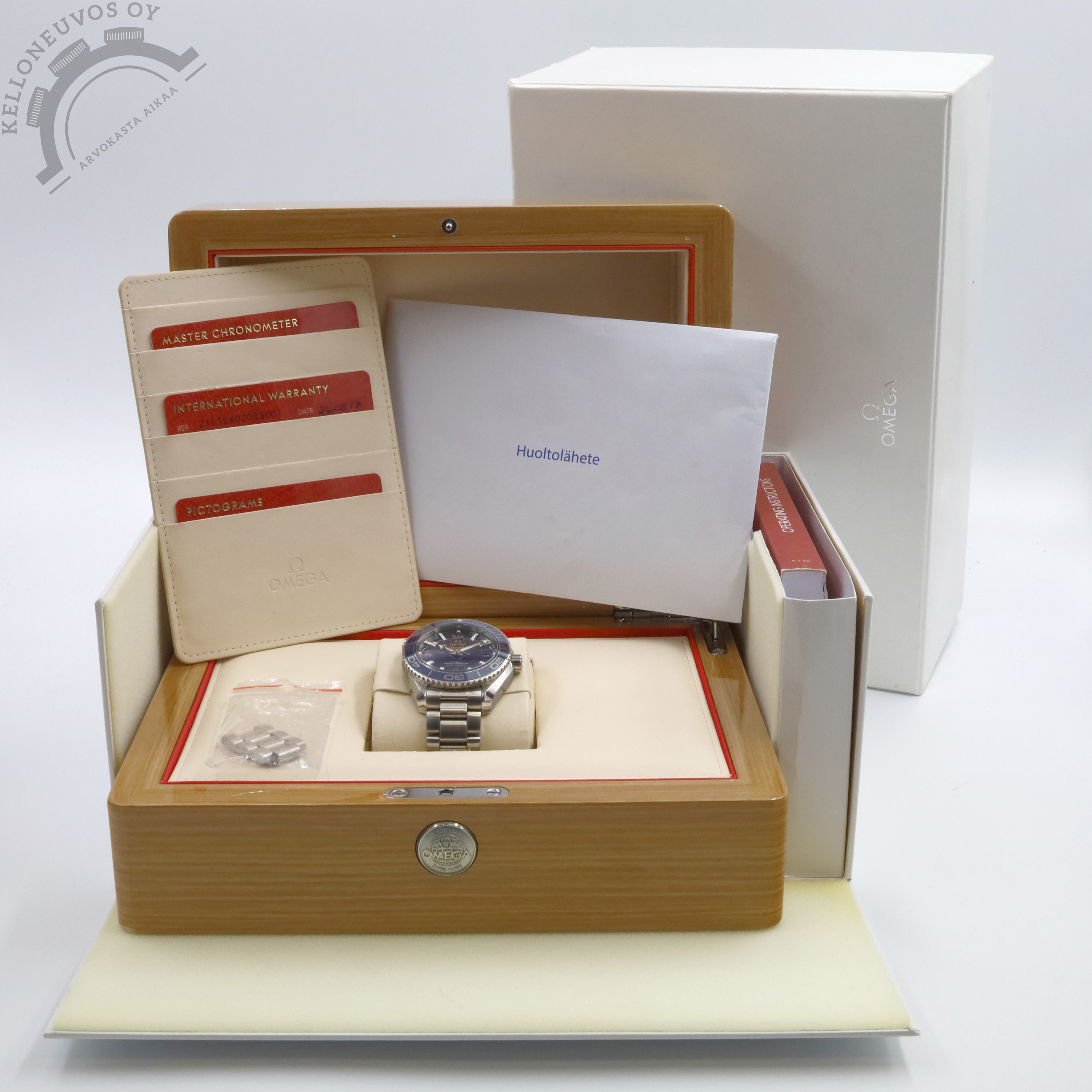 Tarjolle jo valmistuksesta poistunut, upeassa kunnossa oleva, näyttävä sininen Planet Ocean kaikille sopivassa mukavassa 39,5mm koossa. Kellosta löytyy todella upea sininen taulu päivyrillä sekä sininen keraaminen kehä. Laadukas Omegan teräsranneke micro-säädettävällä claspilla takaa mahtavan ranneistuvuuden. Koneistona toimii Omegan METAS sertifioitu 8800 -automaatti jossa 55h käyntivara. Full set, kellon takuukortti on päivätty 8/2017. Lisäksi kello on täyshuollettu merkin virallisessa huollossa 10/2025.