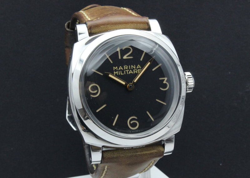 Hienokuntoinen Panerai Marina Militare Radiomir 1940 PAM587, joka on ostettu uutena joulukuussa 2014 ja tämä malli on limited edition, jota valmistettu vain 1000 kpl. Kellossa on 3 päivän käyntivaralla varustettu manuaalivetoinen inhouse P.3000 kaliiperi, joka huollettu täysin tehdashuollossa 12/2025, josta huoltotakuu 12/2027 asti sekä uusi pleksilasike. Mukaan isot limited edition boksit todistuksineen, manuaalit, vaihtolasike, kiilloitusliina, takuutodistus sekä huoltotodistus 2025 huollosta.