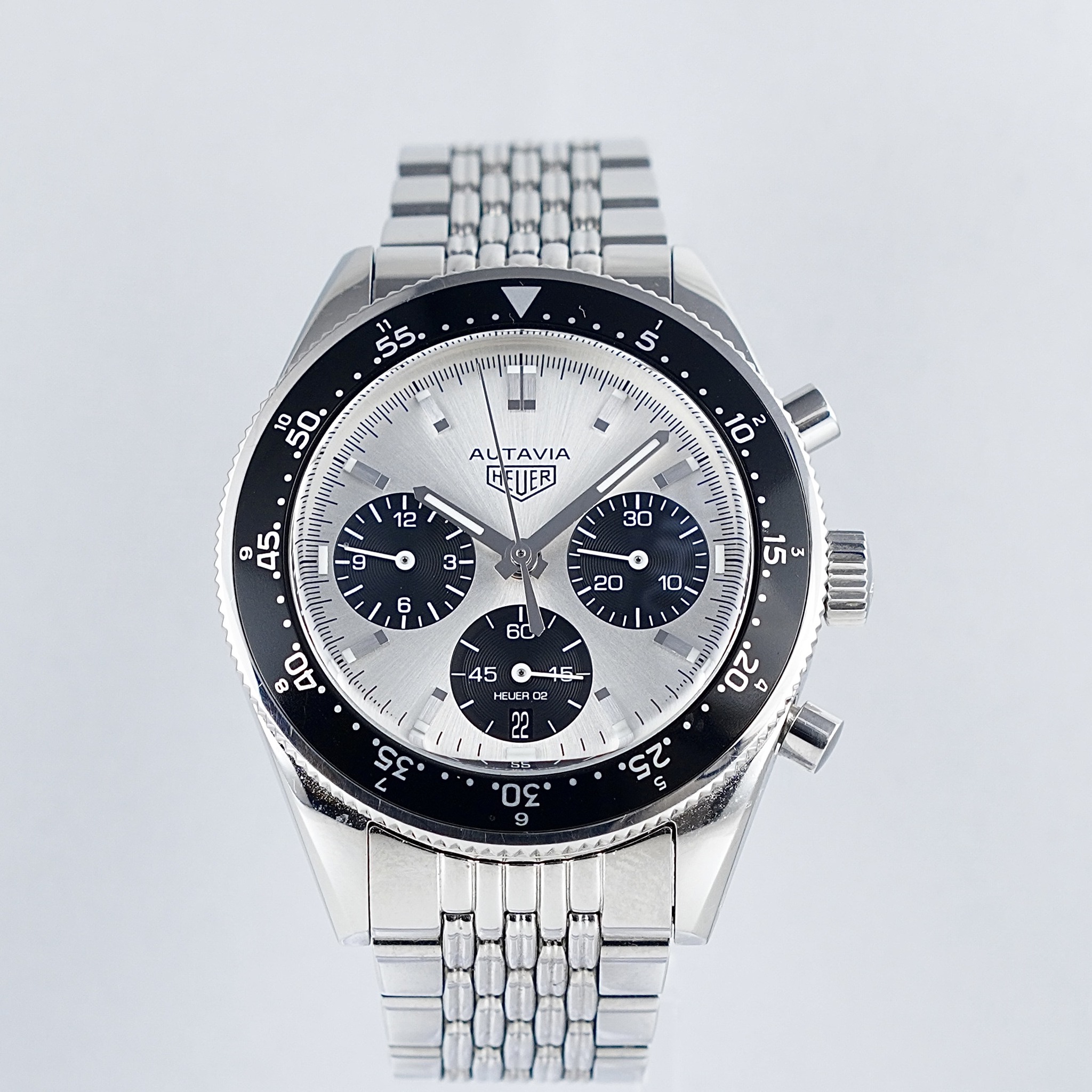 Upea limited edition TAG Heuer Autavia sillä halutummalla vaalealla taululla. Fullset, jonka takuukortti on päivätty 1/2022 suomalaisella jälleenmyyjällä. Kokonaisuudessaan todella näyttävä ja elegantti kronografi-mallin kello, jossa erittäin miellyttävän rannetuntuman antava alkuperäinen metalliranneke. Safiirilasike, päivyri ja ajanotto.