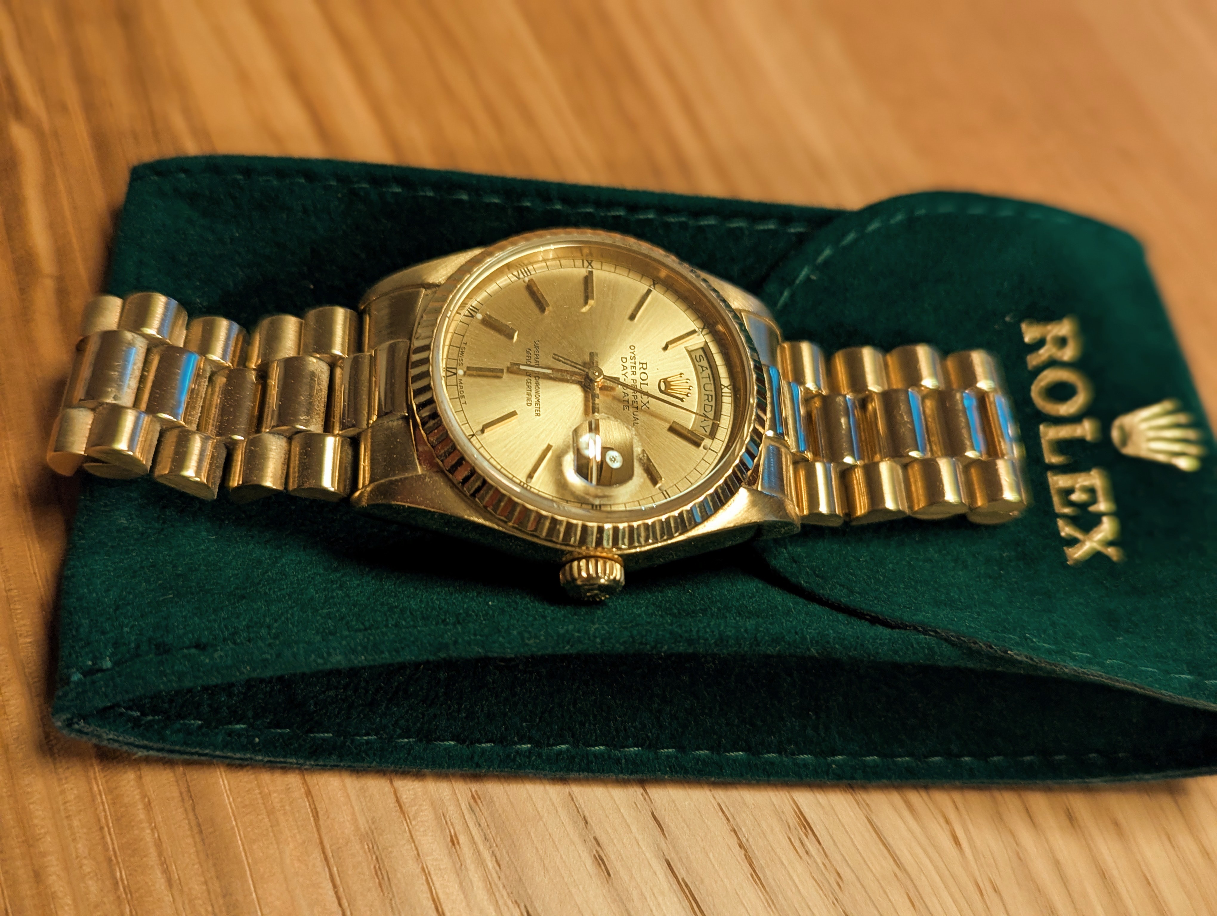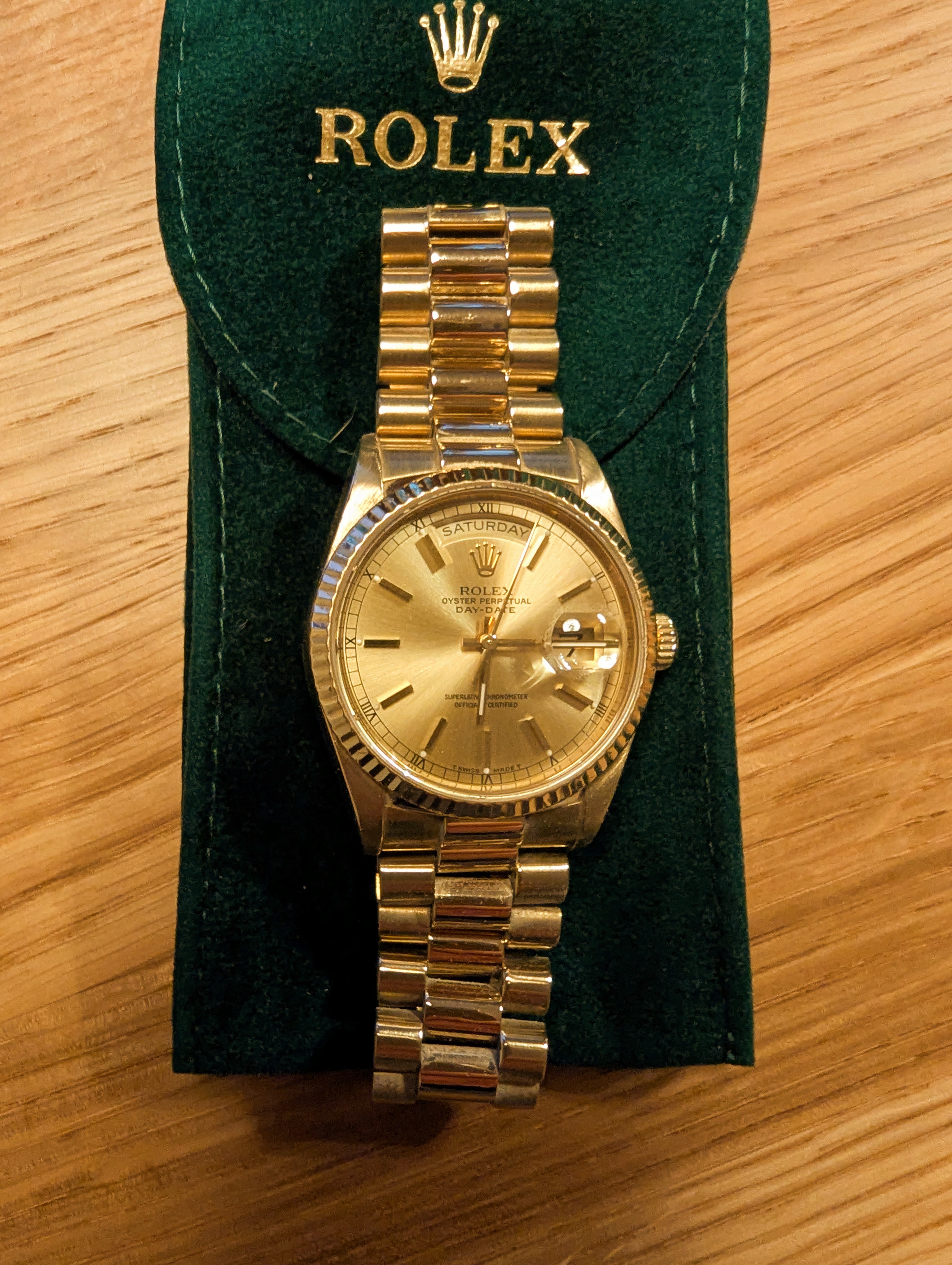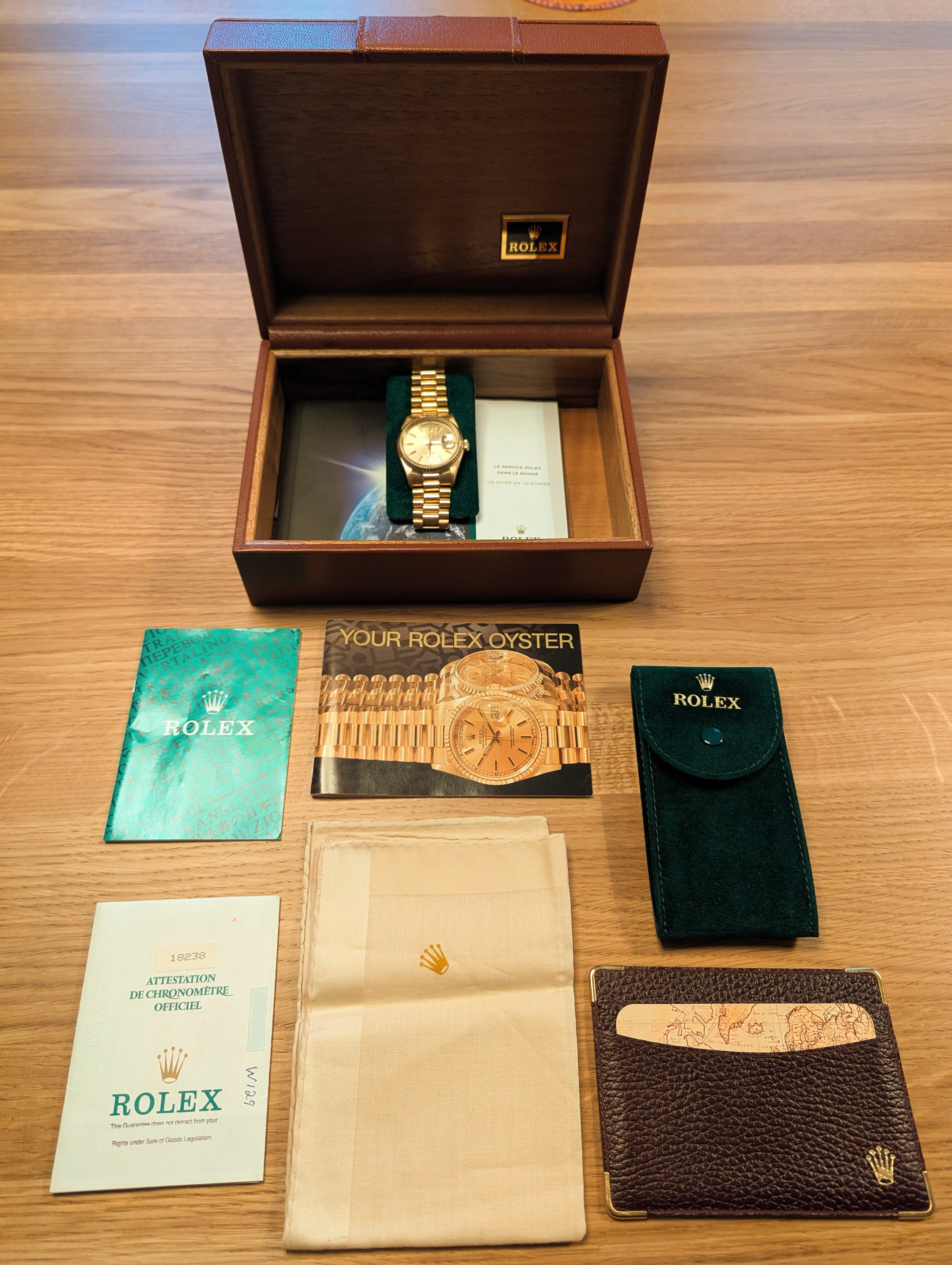 18238 voidaan pitää miesten kellojen huipuna – klassinen ulkonäkö, vankka ja luotettava koneisto, valmistettu 18 karaatin kullasta, riittävän suuri tekemään vaikutuksen, mutta riittävän pieni mahtuakseen paidan hihan alle.