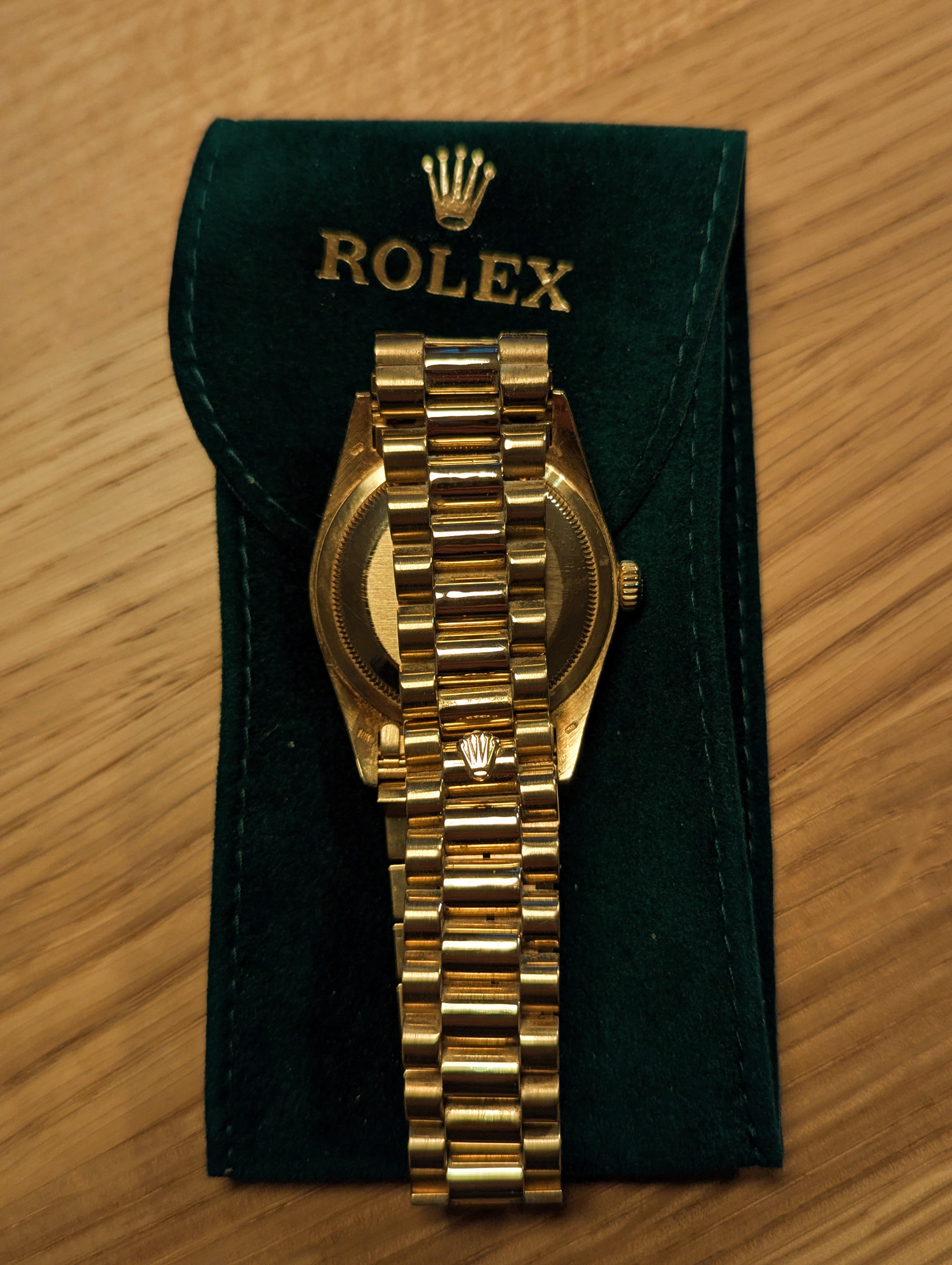 Upea kultainen Day-Date erinomaisessa kunnossa. Ollut käyttämättömänä laatikossaan vuodesta 2019 lähtien.