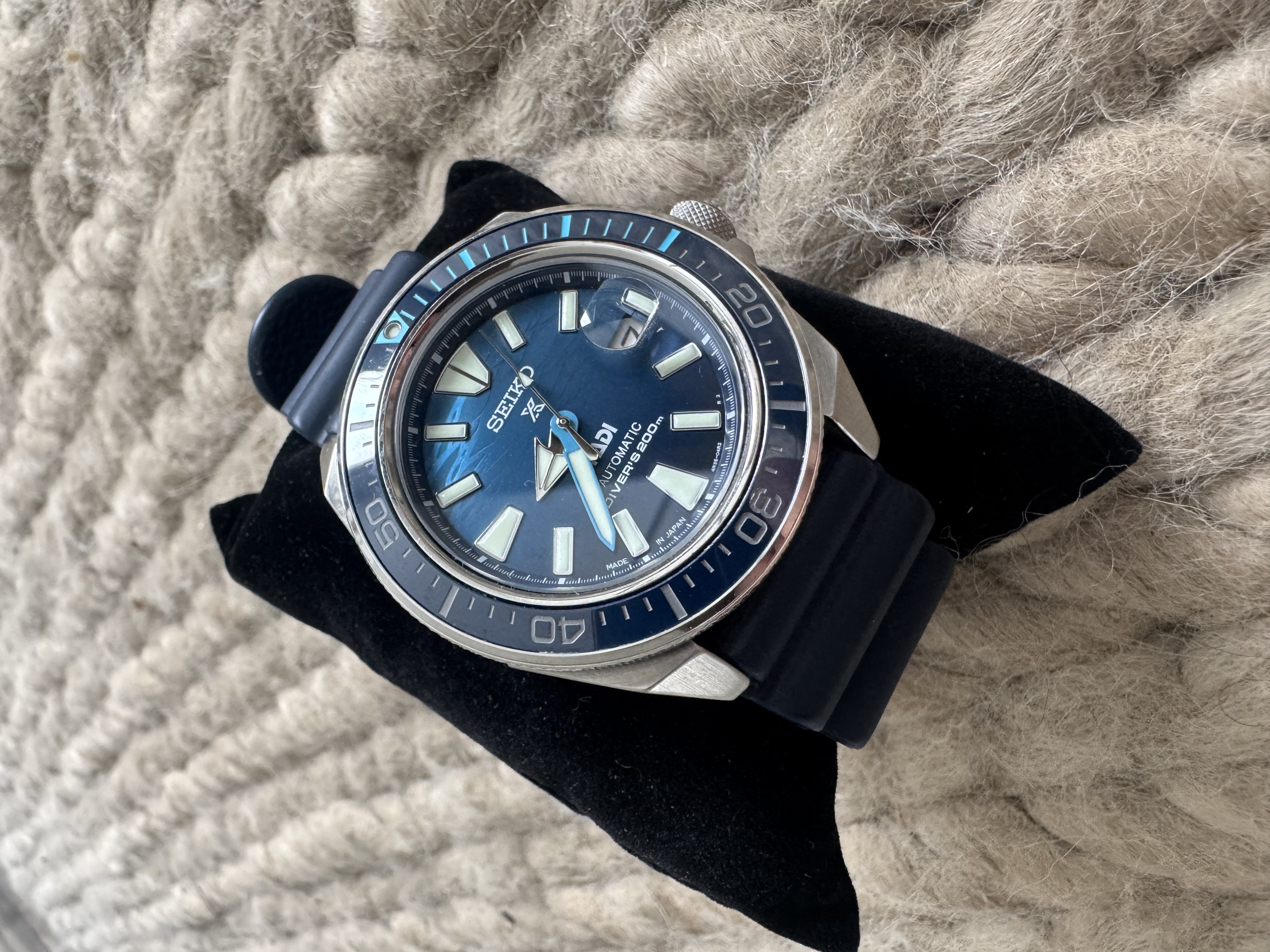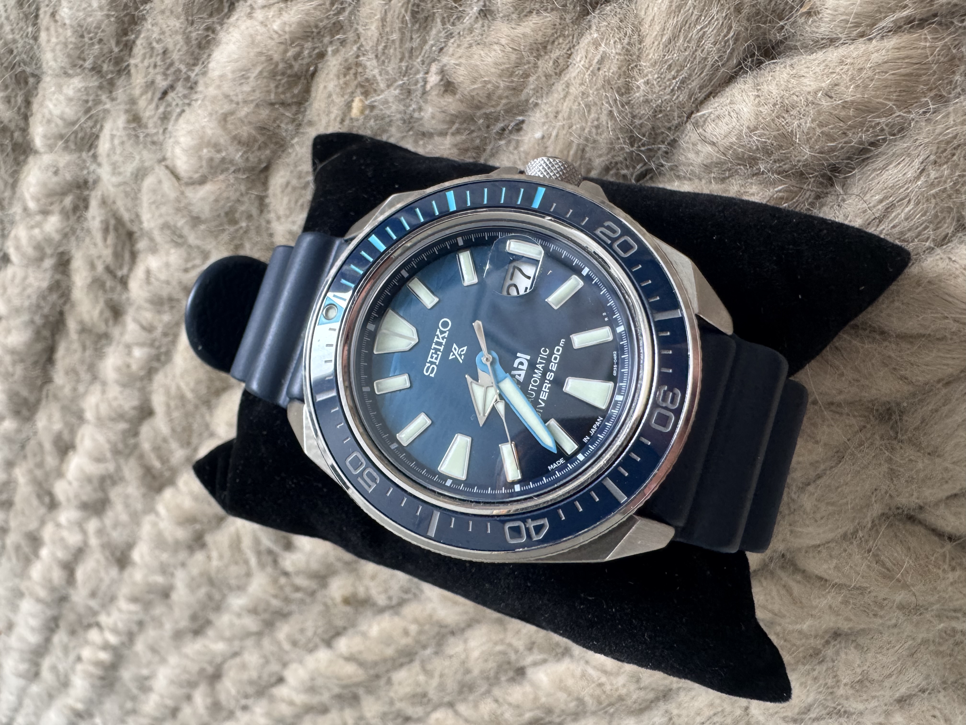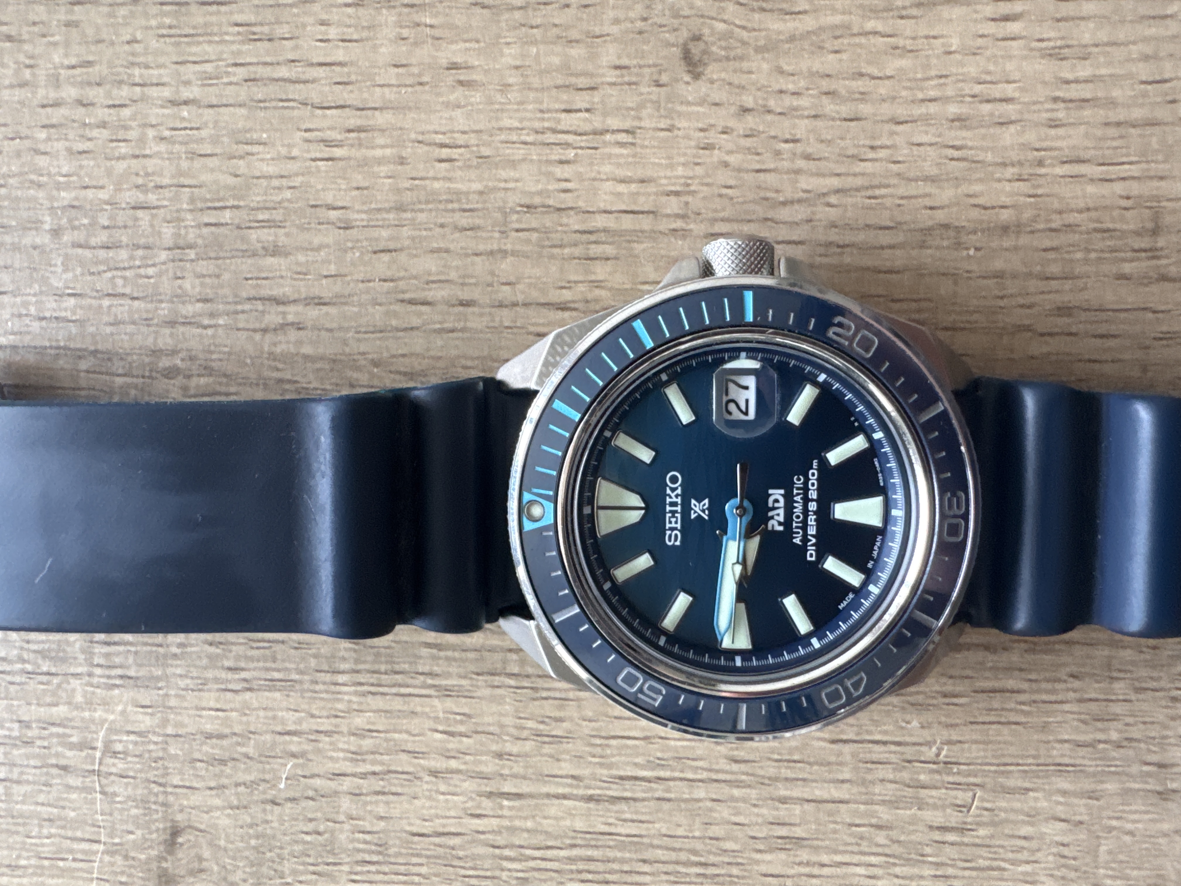 Seiko Samurai, JDM (Jpanin sisäisille markkinoille julkaistu) malli jota ei varmasti montaa saman mallinumeron kelloa tule Suomessa vastaan.