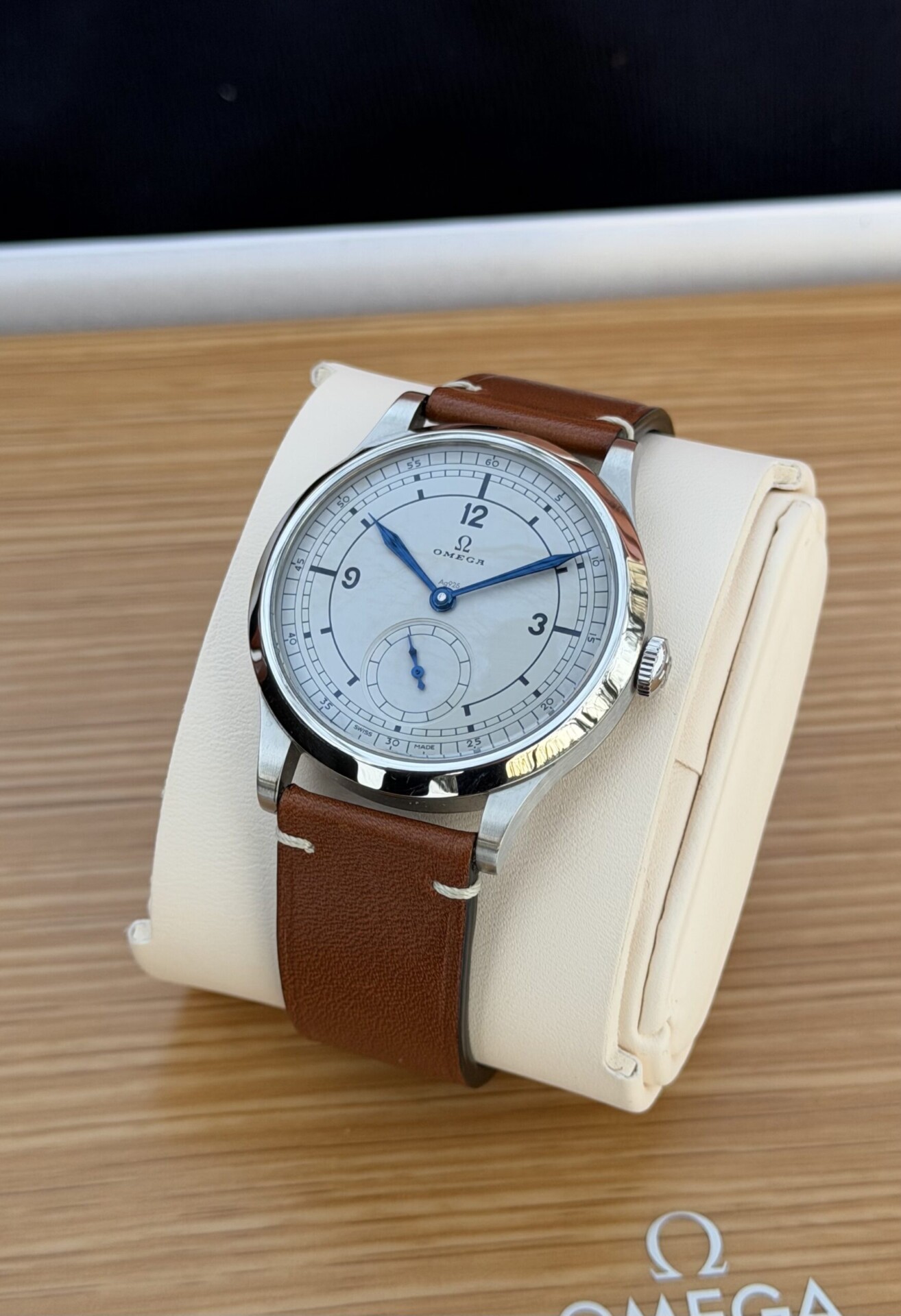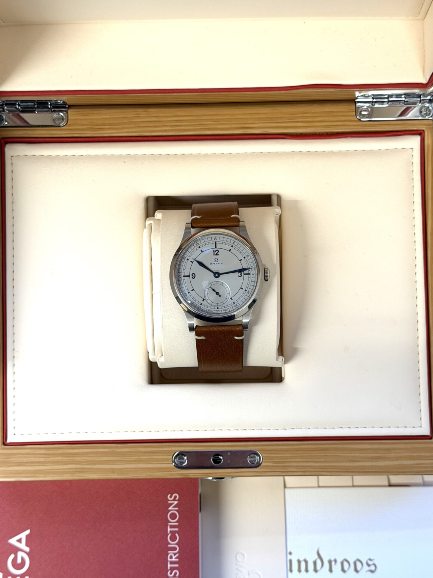 Erinomaisessa kunnossa oleva Omega CK859 Re-edition (01/2024). Upea malli tarjoaa hillityn, vintage-henkisen ilmeen modernilla toteutuksella. Hopeoitu taulu, siniset osoittimet ja 39 mm kuori tekevät tästä kellosta tyylikkään ja helposti käyttöön sopivan kokonaisuuden. Vuosimalli: 01/2024 Halkaisija: 39 mm Koneisto: 8926 – manuaalivetoinen n. 72 tunnin käynnillä Kellon mukana: Complete set (laatikot, takuukortti, manuaali) Valmistajan takuu voimassa 01/2029 saakka