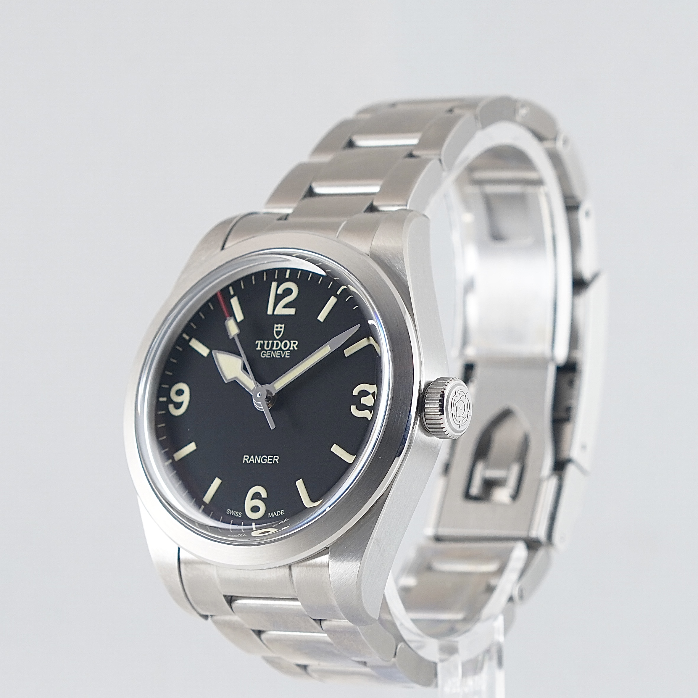 Tudorin tuore Ranger käyttämättömänä. Fullset, jonka takuukortti päivätty 5/2025. Valmistajan takuu voimassa 5/2030 asti. Todella hienosti viimeistelty kokonaisuus ja kellossa alkuperäinen metalliranneke täysipitkänä. Tyylikkään pelkistetty taulu, safiirilasike ja ruuvilukittava nuppi. Tästä uudehko kello suoraan ranteeseen.