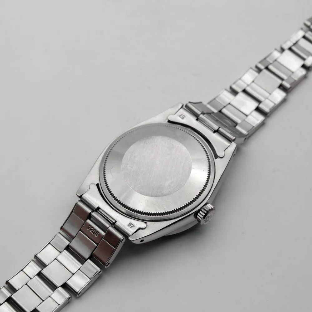 Rannekkeena alkuperäinen Rolex 7205 rivet-teräsranneke 57-päätypaloilla. Nykyisellä linkkimäärällä ranneke on helposti säädettävissä mikrosäädöllä noin 17,5–19,5 cm ranteisiin, ja mukaan tulee vielä lisäpala, jonka lisäämällä (kellosepän toimesta) ranneke riittää jopa n. 21cm ranteeseen.
