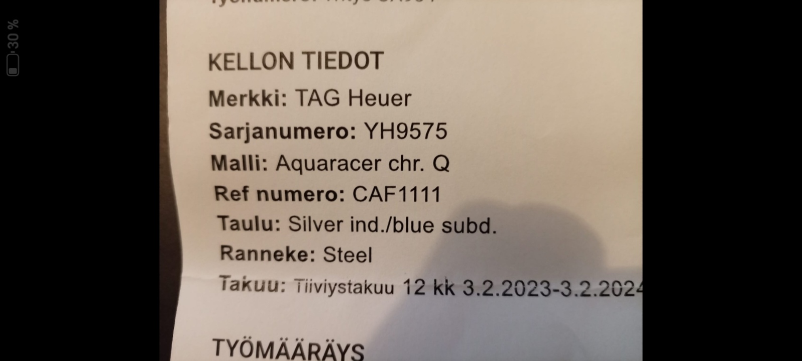 Huoltokuitti, testauksesta myös kuitti.