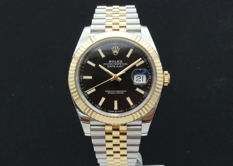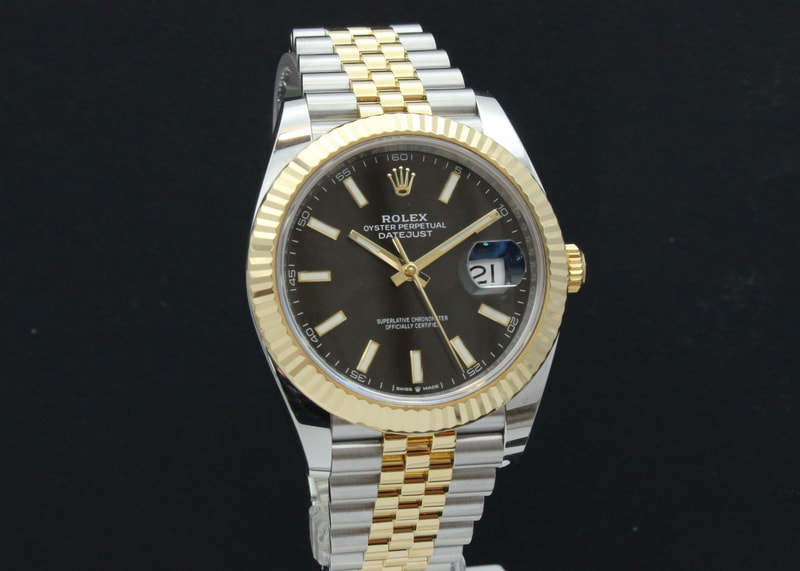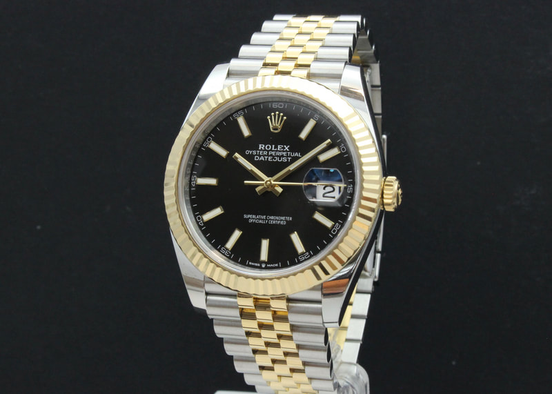 Huippukuntoinen Rolex Datejust 41 126333 upealla bright black taululla, fluted bezelillä ja jubileerannekkeella. Kellossa uusin 3235 koneisto 70h käyntivaralla. Kello on ostettu uutena heinäkuussa 2024, joten valmistajan takuu voimassa 7/2029 asti. Mukaan boksi, manuaalit, hangtagit ja takuukortti. Ovh. 17 550€