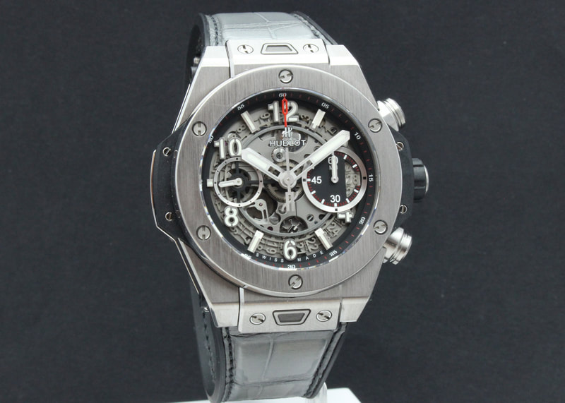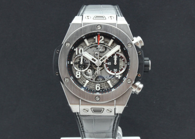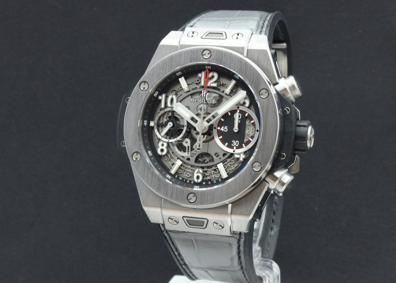 Hienokuntoinen Hublot Big Bang Unico Titanium 42mm 441.NX.1170.RX, joka on ostettu uutena tammikuussa 2021. Kellossa Unico 1280 automaattikoneisto flyback toiminnolla, joka on käy hyvin. Kelloon on ostettu harmaa merkin oma nahkakumiranneke (745€), alkuperäinen musta kumi mukaan. Kellon mukana tulee boksi, hangtag, takuukortti (NFC) ja alkuperäinen musta kumiranneke. Ovh. 22 600€