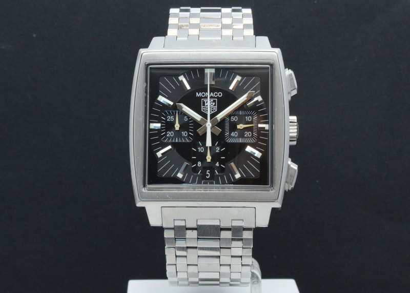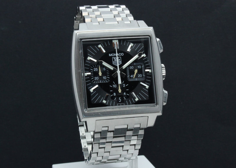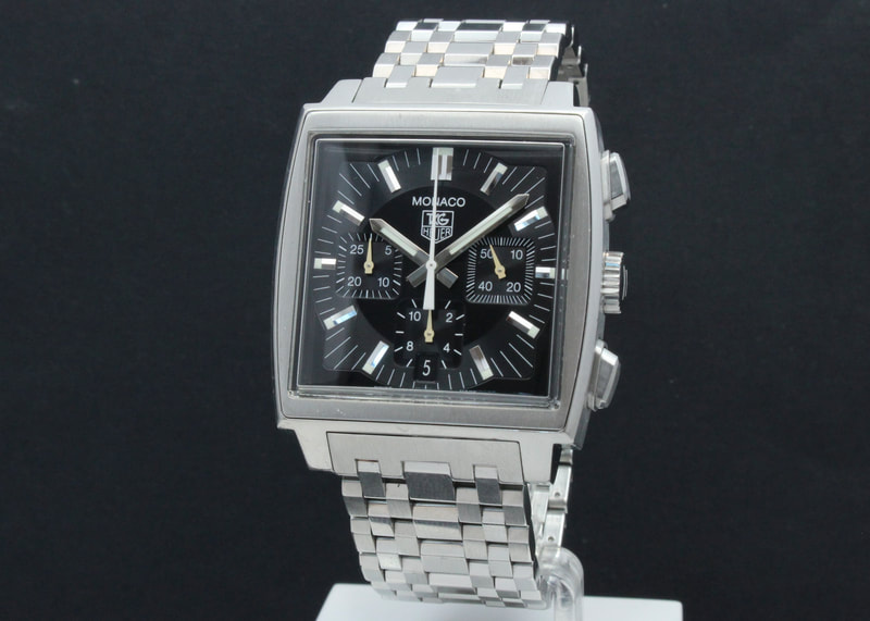 Siistikuntoinen Tag Heuer Monaco CW2111 mustalla taululla, pleksilasilla ja merkin omalla metallirannekkeella. Kello on ostettu uutena elokuussa 2006. Kellossa tarkkakäyntinen calibre 17 automaattikronografi, joka on huollettu merkin virallisessa huollossa 4/2025. Mukaan boksit, manuaali, hangtag, takuukortti, ostokuitti ja huoltotodistus 2025.