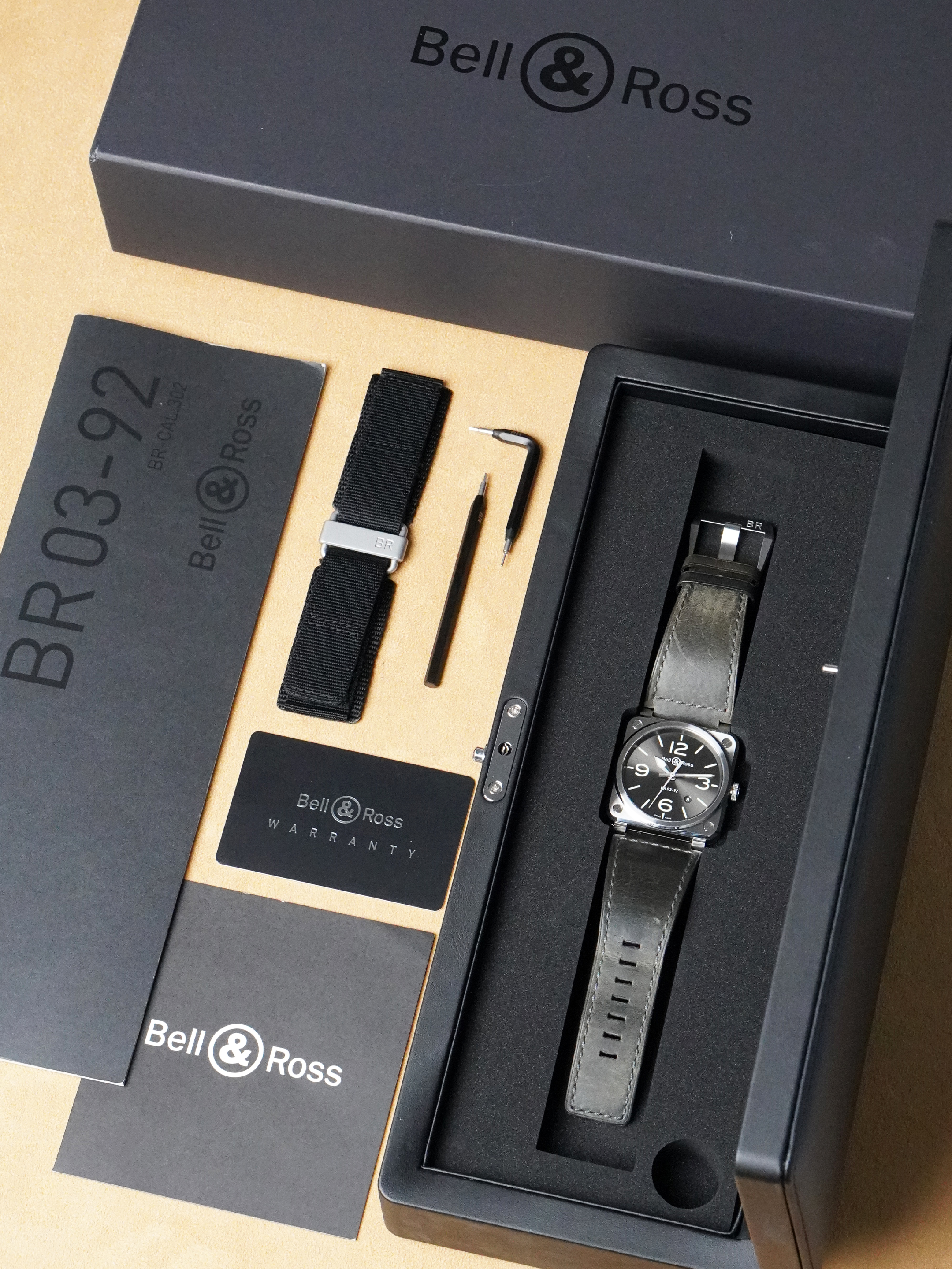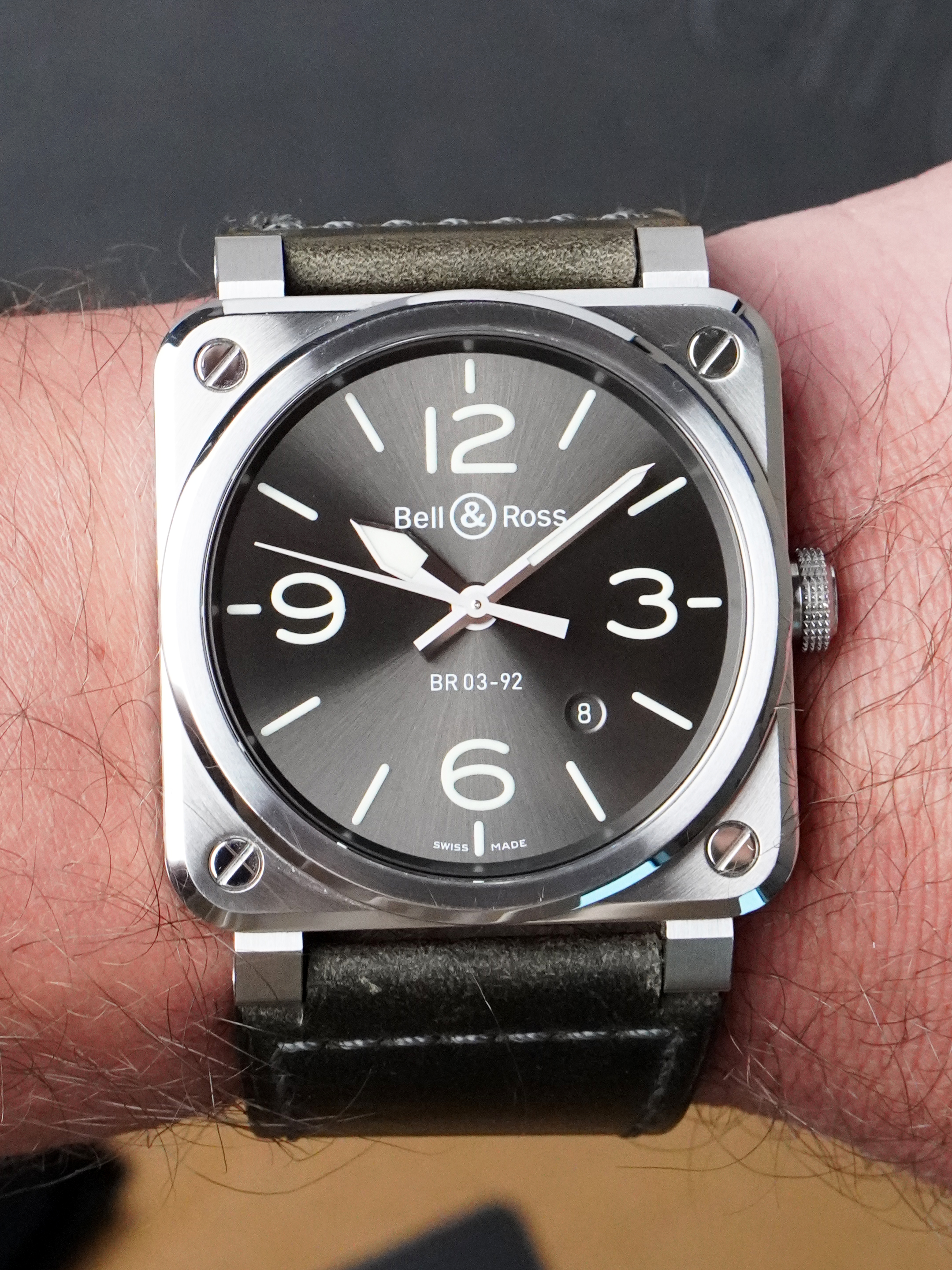 Tässä versiossa on näyttävä sunburst-antrasiitinharmaa kellotaulu suurilla arabialaisilla numeroilla ja indekseillä, jotka on pinnoitettu vihreällä Super-LumiNovalla, taaten erinomaisen luettavuuden heikossa valaistuksessa. Skeletonoidut metalliset osoittimet, jotka on täytetty Super-LumiNovalla, korostavat entisestään kellon instrumenttimaisuutta. Kellon voimanlähteenä toimii luotettava BR-CAL.302 -automaattikoneisto, tarjoten tunnit, minuutit, sekunnit sekä päivämääränäytön.