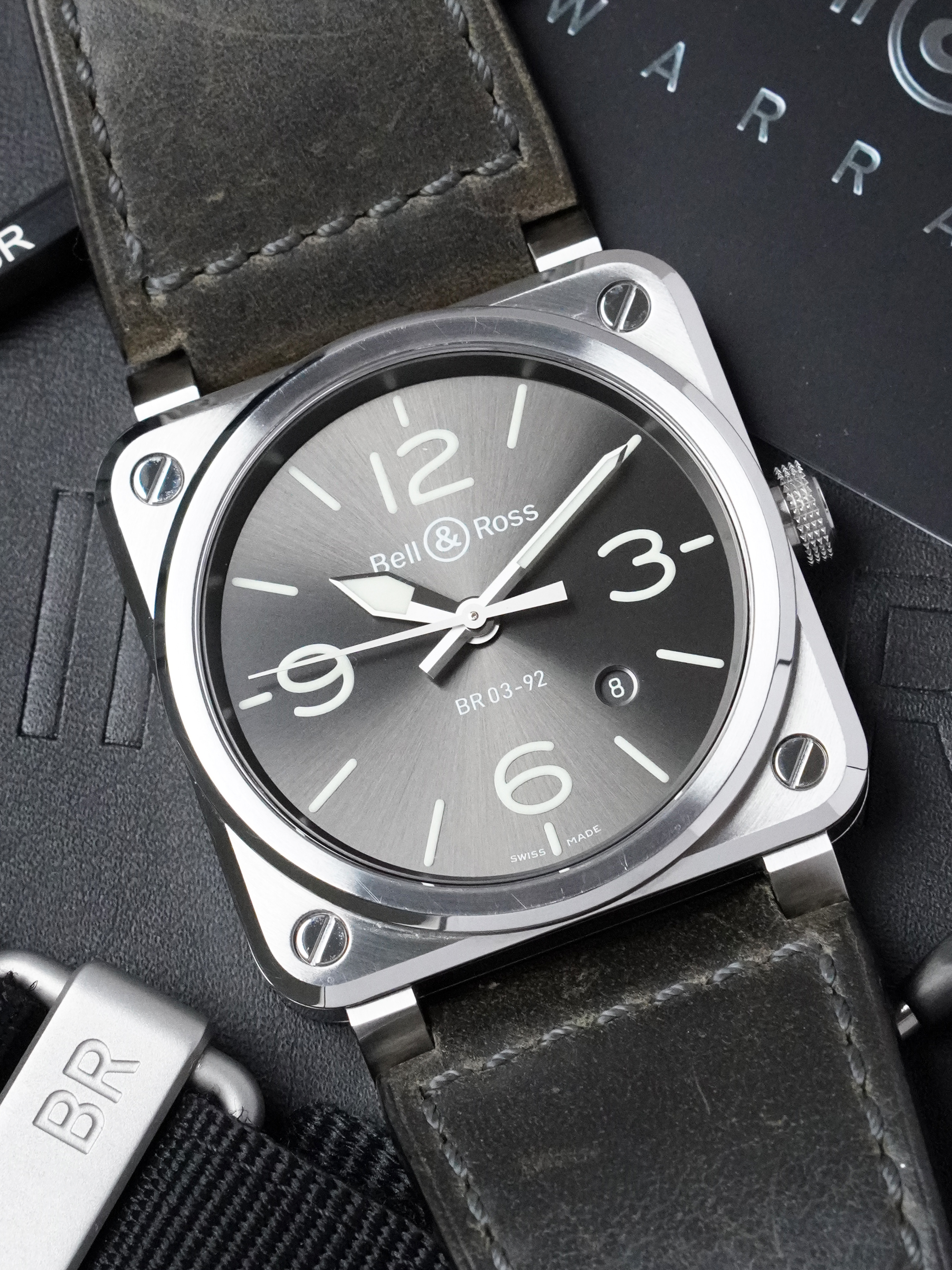 Moderni ilmailuhenkinen instrumenttikello, Bell & Ross BR03-92 Grey Lum ilmentää brändin tunnusomaista muotoilufilosofiaa, jossa neliönmuotoiset kuoret ovat suoraan saaneet inspiraationsa sotilaslentokoneiden ohjaamoinstrumenteista. BR03-92 -sarja on yksi merkin tunnistettavimmista malleista, arvostettu erinomaisesta luettavuudestaan, kestävästä rakenteestaan ja funktionaalisesta pilot-kellon designistaan.