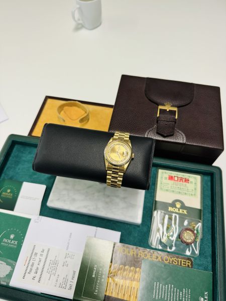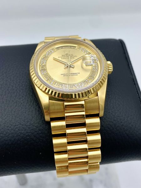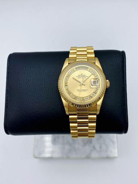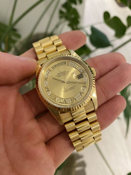 Erinomaisessa kunnossa oleva Rolex Day-Date todella harvinaisella myriad taululla ja roomalaisilla numeroilla. Käsittämättömän upea kokonaisuus.