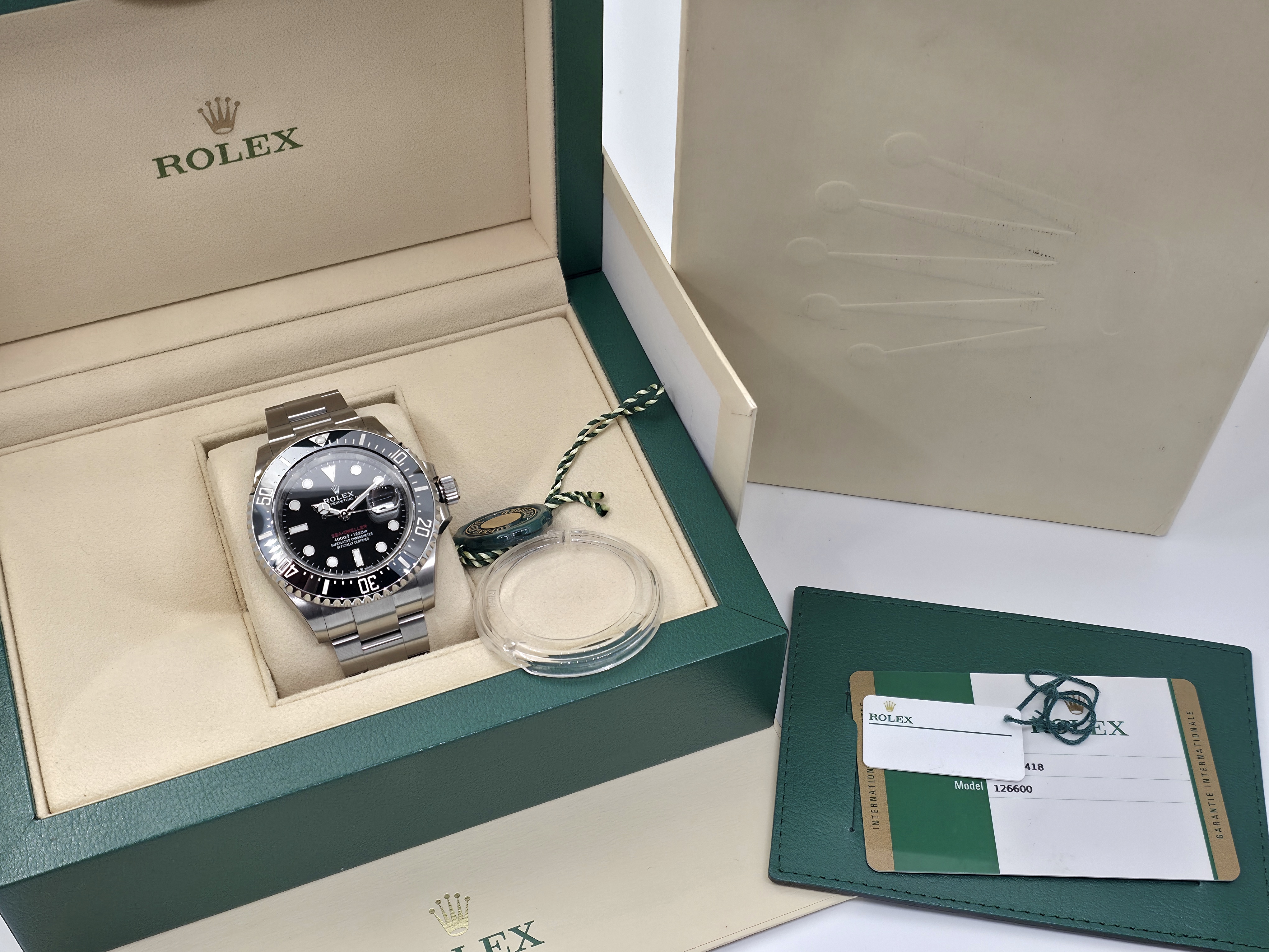 Käyttämätön ja muoveissa oleva Rolexin Sea-Dweller 43 huippu diveri! Erittäin onnistunut malli, jossa mm. 1220m wr, loistava lume ja 70h käyntivaran koneisto. Fullset 06/2020. Tästä heti ranteeseen erinomainen vaihtoehto uudelle. Ovh. 14 700e