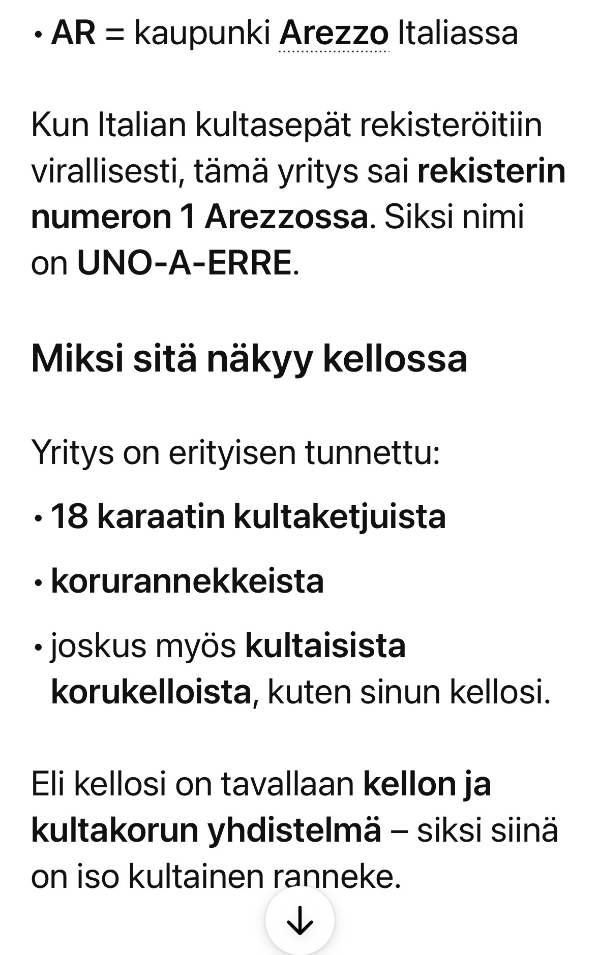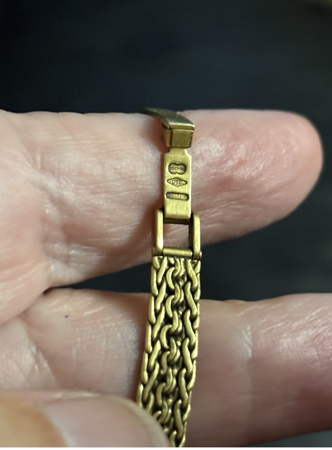 Eli 18 kr kultaa sekä kello että ranneke , kuuluisan italialaisen koruvalmiststajan tuotantoa , ostettu v 1987. Painaa n 19 g kotivaaka, digitaali