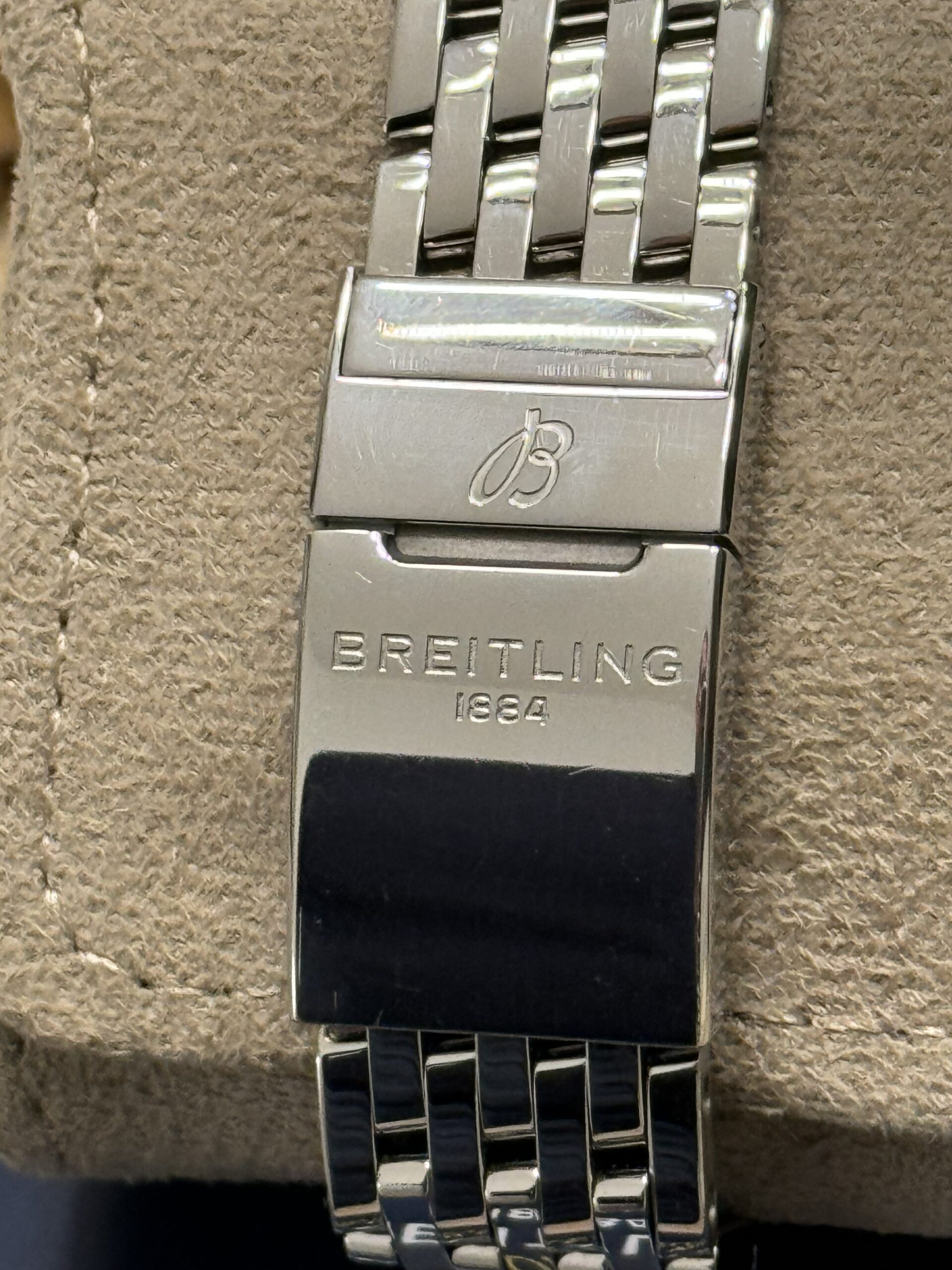 Upeassa kunnossa olevan Breitlingin huippulaite. Kellon koko on 42mm ja se kestää 10 ATM (100m) paineen. Kellon sisällä tikkaa B01-automaattikoneisto, jolla on 70 tunnin käyntivara. Kellosta löytyy päivyrin lisäksi chrono, eli ajanotto-toiminto. Alkuperäisen 7-rivisen teräsrannekeen lisäksi kelloon on ostettu Breitlingin oma nahka-ranneke linkkulukolla.