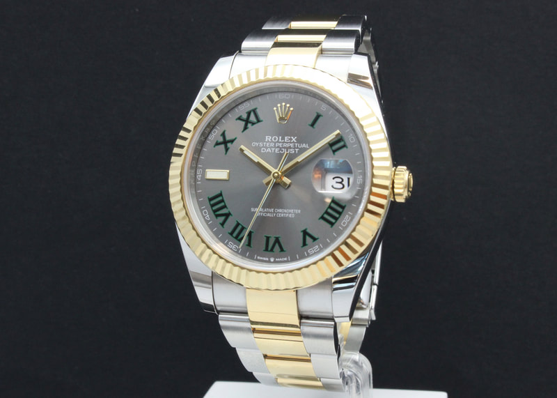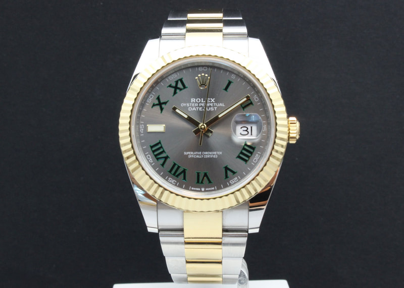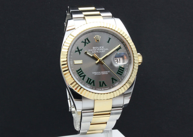 Huippukuntoinen teräskultainen Rolex Datejust 41 126333 halutulla wimbledon taululla, fluted bezelillä ja oysterrannekkeella. Kellossa uusin 3235 koneisto 70h käyntivaralla. Kello on ostettu uutena kesäkuussa 2023, joten valmistajan takuu voimassa 6/2028 asti. Mukaan boksi, manuaalit, hangtagit ja takuukortti. Ovh. 16 750€