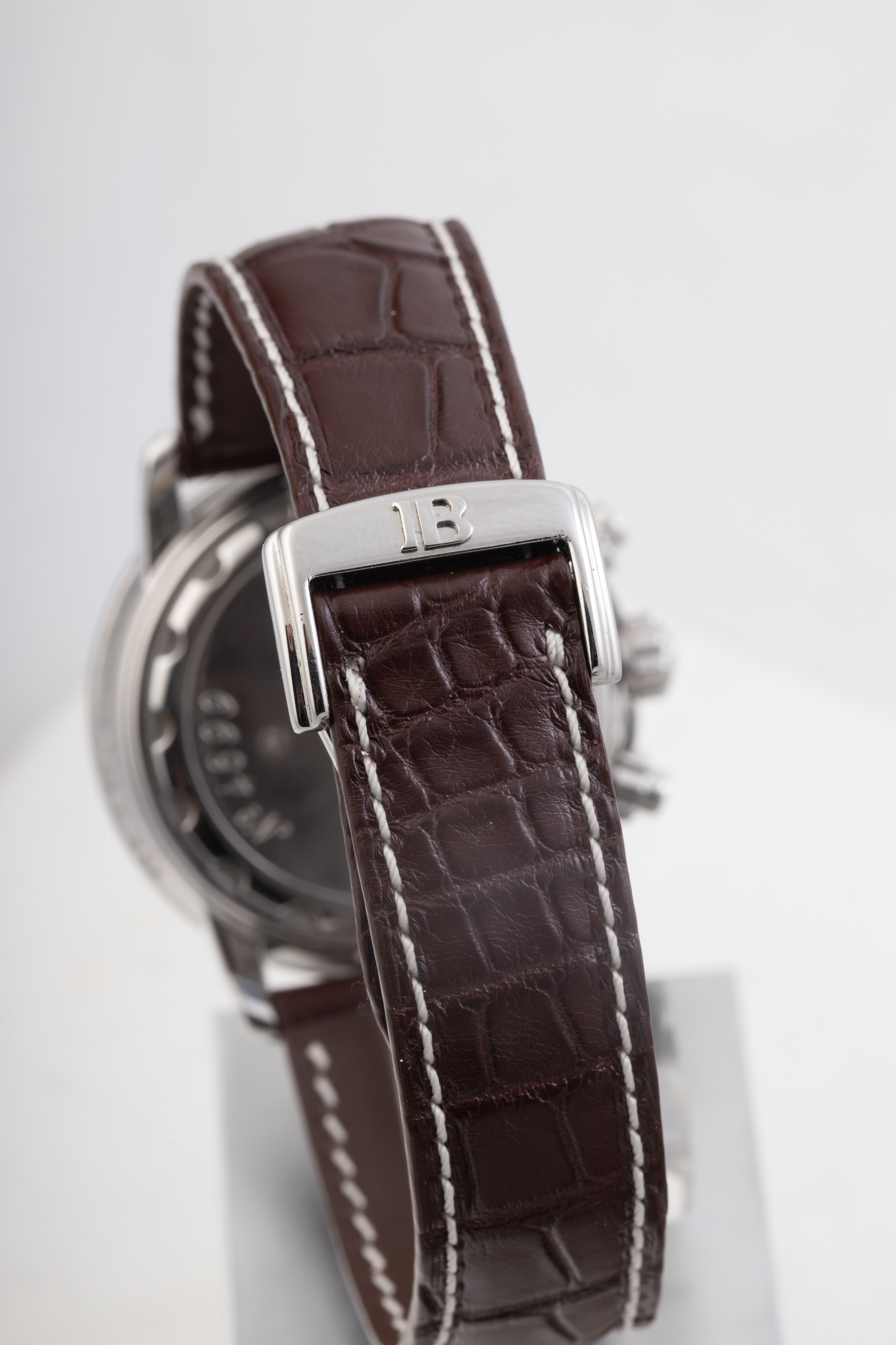 The watch features an automatic movement, flyback function, and a triple subdial chronograph layout. Comes with the original Blancpain box. The watch has been well preserved, only the original leather strap shows significant wear and thus the watch comes equipped with a new hand-made aftermarket strap (original strap included as well).