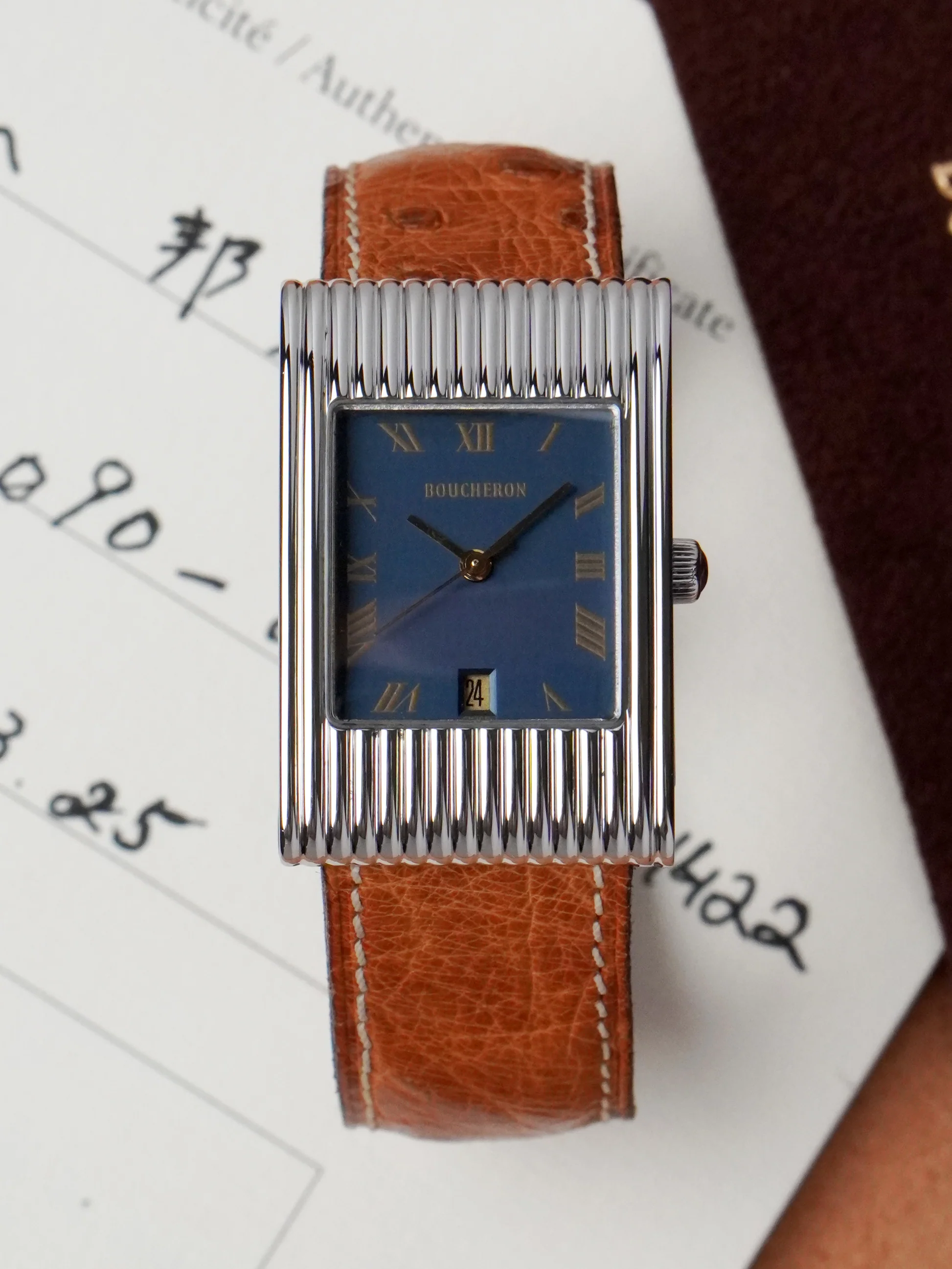 Tämä kello on erittäin hyvässä kunnossa, ja sillä on ollut vain yksi omistaja. Se ostettiin 25. maaliskuuta 2006 Boucheron Ginza -myymälästä Japanista, ja se toimitetaan täydellisenä sarjana, joka sisältää ulkolaatikon, alkuperäisen laatikon, asiakirjapidikkeen, käyttöohjeen, Boucheron-puhdistusliinan ja alkuperäisen takuutodistuksen.