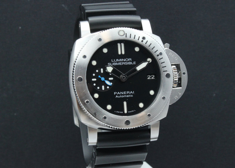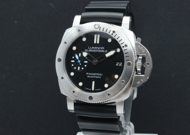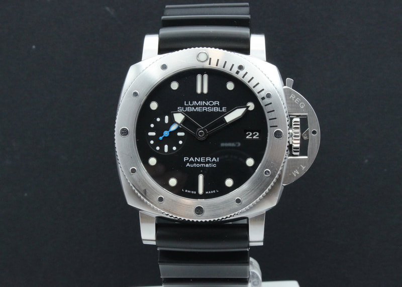 Hyväkuntoinen ja tuotannosta poistunut Panerai Submersible PAM682, joka haluttu malli safiiritakakannella. Kello on ostettu uutena maaliskuussa 2018, ja sen P.9010 automaattikoneisto on täyshuollettu tehtaalla 12/2025. Mukaan kauppiaanlaatikko, manuaalit, kopan kumisuojus, takuutodistus, kiilloitusliina.