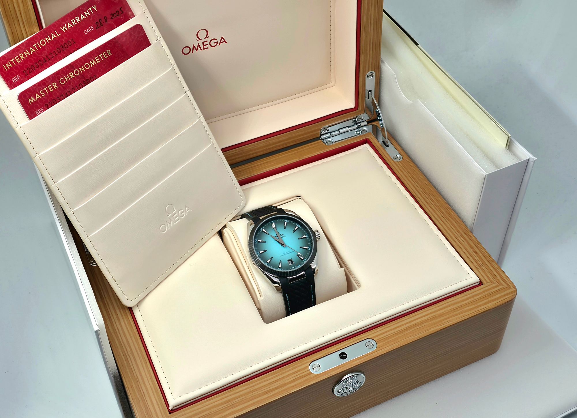 Omega Seamaster Aqua Terra 41mm. Upealla turkoosilla taululla ja keraamisella bezelillä. Fullset 08/2025. Kello on hyvin siistissä kunnossa! Takuu voimassa 08/2030 asti. Ovh. 8000e