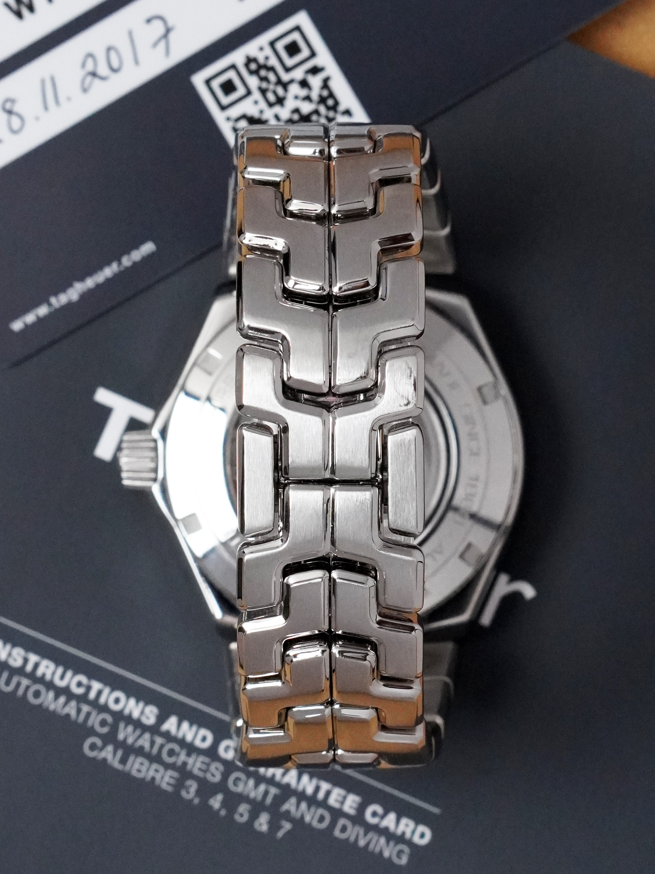 Tämä yksilö on erittäin hyvässä kunnossa ja se on tarkastettu täysin talon sisäisen sertifioidun kelloseppämme toimesta. Lisäksi kello on huollettu täydellisesti SWF:llä (valtuutettu TAG Heuer -huoltokeskus) 11.08.2025, sisältäen koneiston täydellisen huollon, kaikkien tiivisteiden vaihdon sekä onnistuneen paineistustestin. Huollon kustannus: 407,10 €.