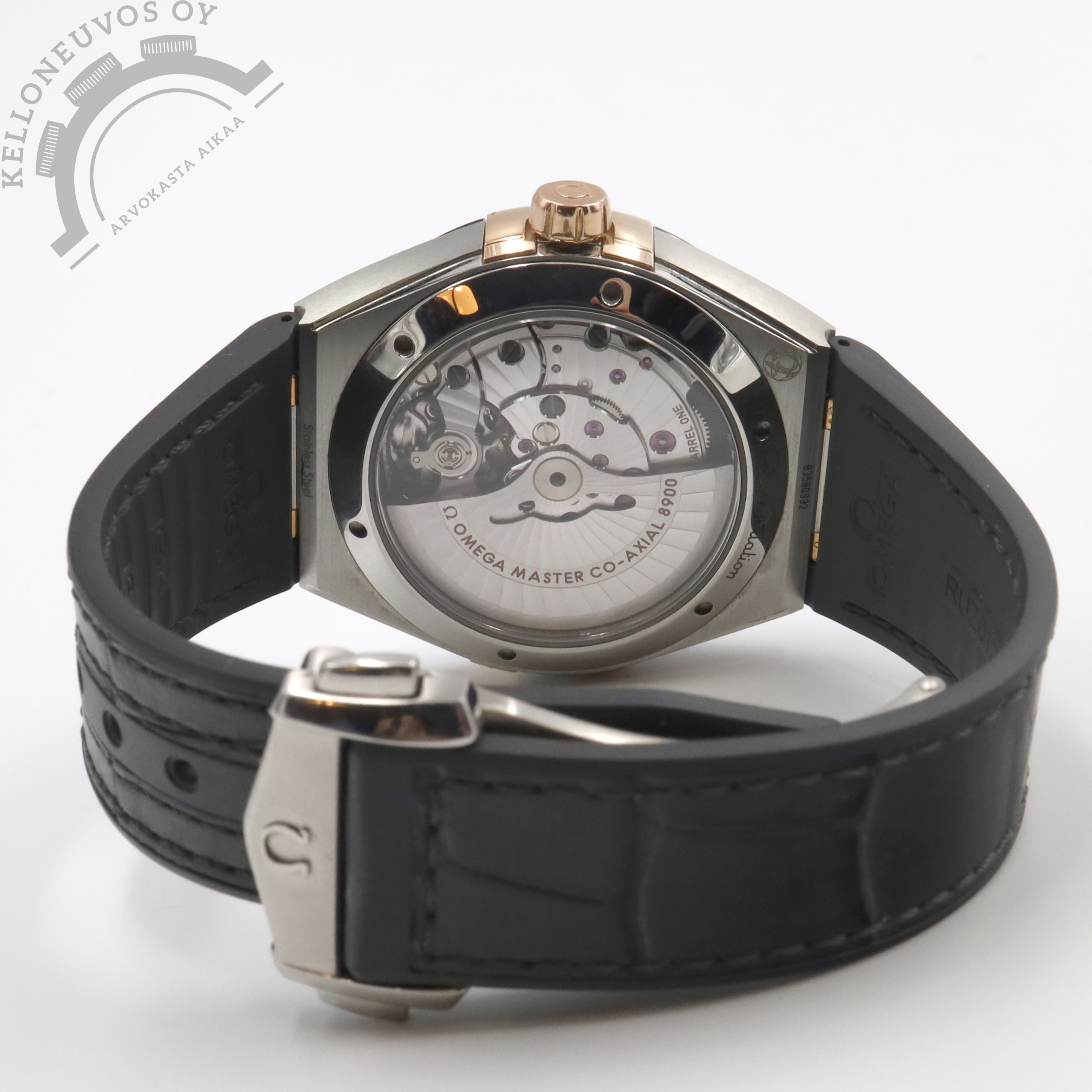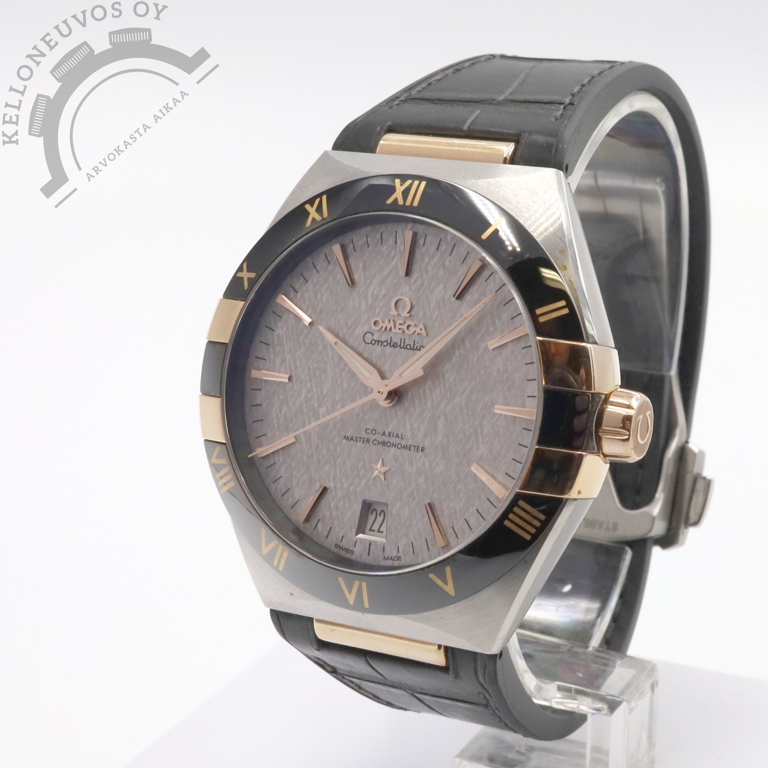 Tarjolle todella upea sekä tyylikäs Constellation. Tajuttoman upea silkkikuvioitu rodiuminharmaa taulu jossa päivyri aseteltuna kello kuuden kohdalle. Osoittimet, Omega-logo, Constellation-tähti sekä indeksit ovat kaikki 18K Sedna -kultaa. Teräksinen kuori jossa kiillotettu keraaminen musta kehä jossa Ceragold -tekniikalla toteutetut roomalaiset numerot. Kokonaisuuden kruunaa Omegan laadukas harmaa nahkapäällysteinen kumiranneke omalla soljella. Koneistona toimii safiirisen takakannen läpi näkyvissä oleva Omega 8900 -automaatti jossa 60h käyntivara. Full set, kellon takuukortti on päivätty kotimaisen jälleenmyyjän toimesta 9/2022. Kellon ovh. 11 500e.
