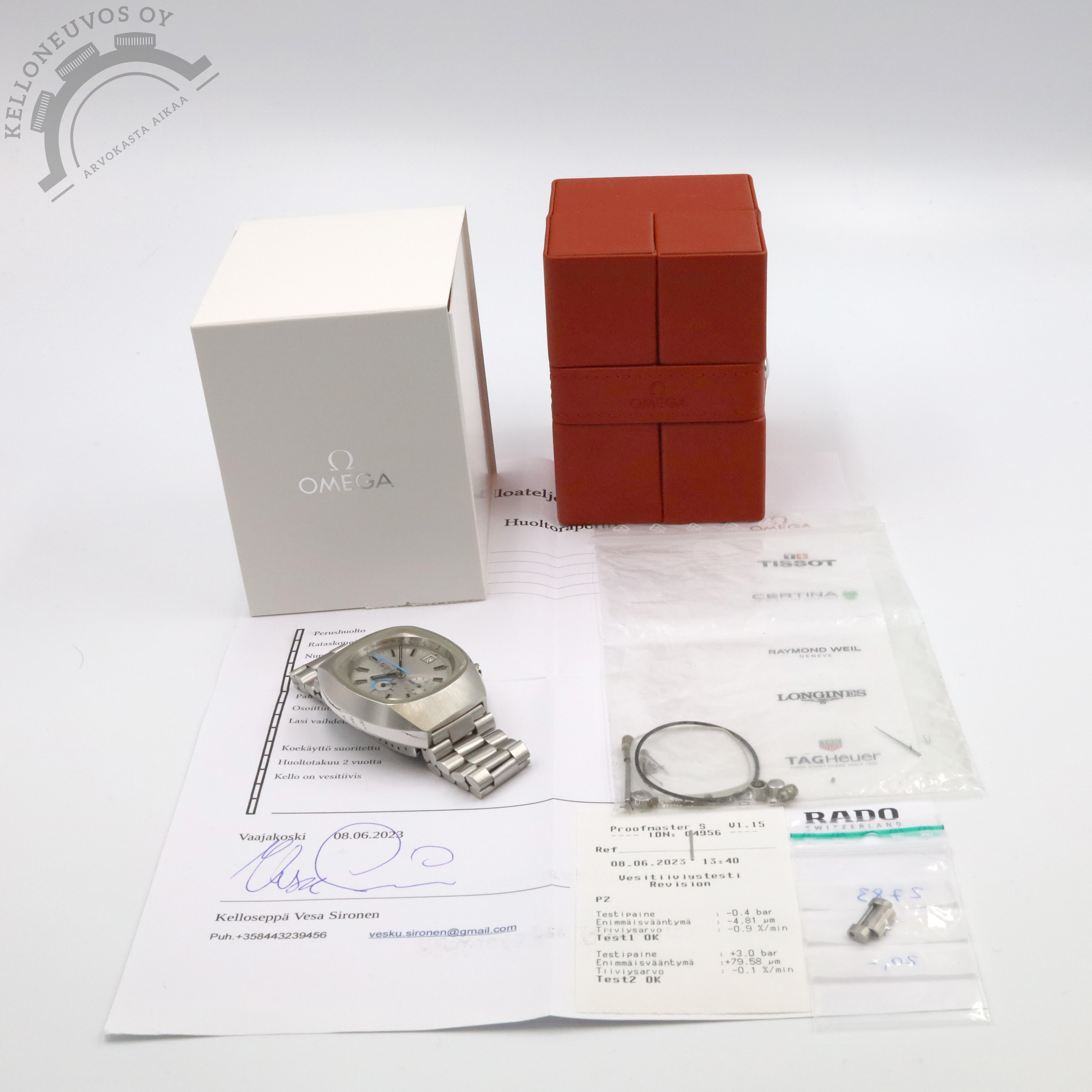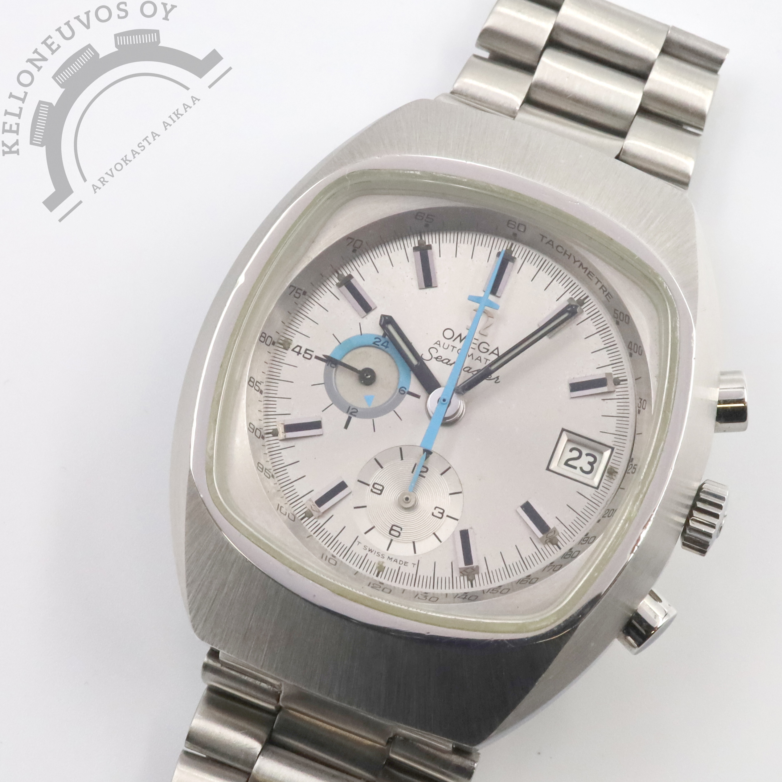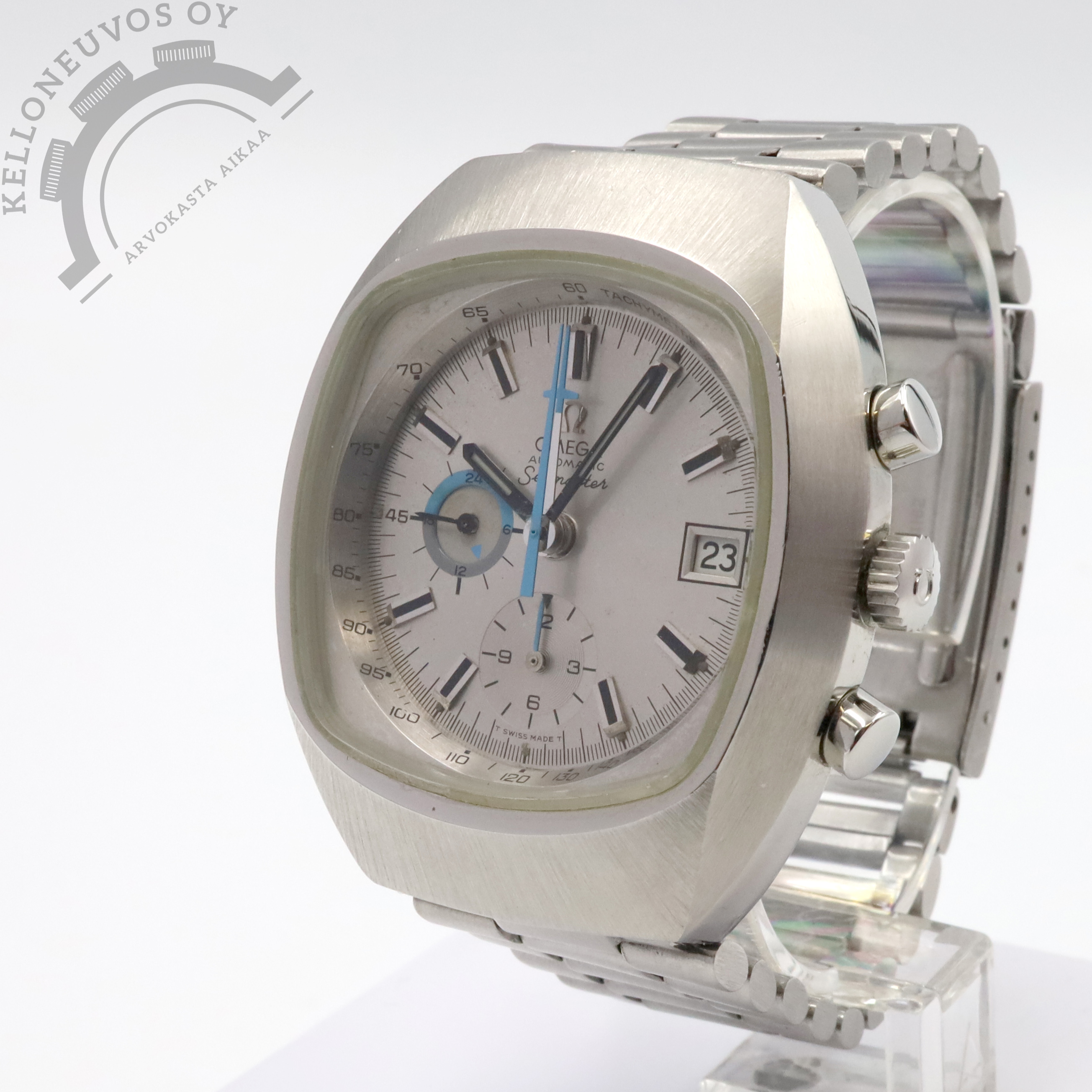 Tarjolle ikäisekseen erittäin siistissä kunnossa oleva sekä hiljattain Omegan virallisessa huollettu ”Jedi”. Upealla hopean/harmaalla taululla jossa päivyri, ajanotto, pikkusekunnit sekä näyttävät siniset osoittimet. Teräksinen TV-case tyylinen kuori yhdistettynä alkuperäiseen teräsrannekkeeseen. Koneistona toimii Omega 1040 -automaatti. Kelloa seuraa Omegan huoltoboksi, dokumentti Omegan virallisesta huollosta sekä huollossa vaihdetut osat. Kellossa kevyt kaiverrus takakannessa. Huollettu Omegan virallisessa 6/2023.