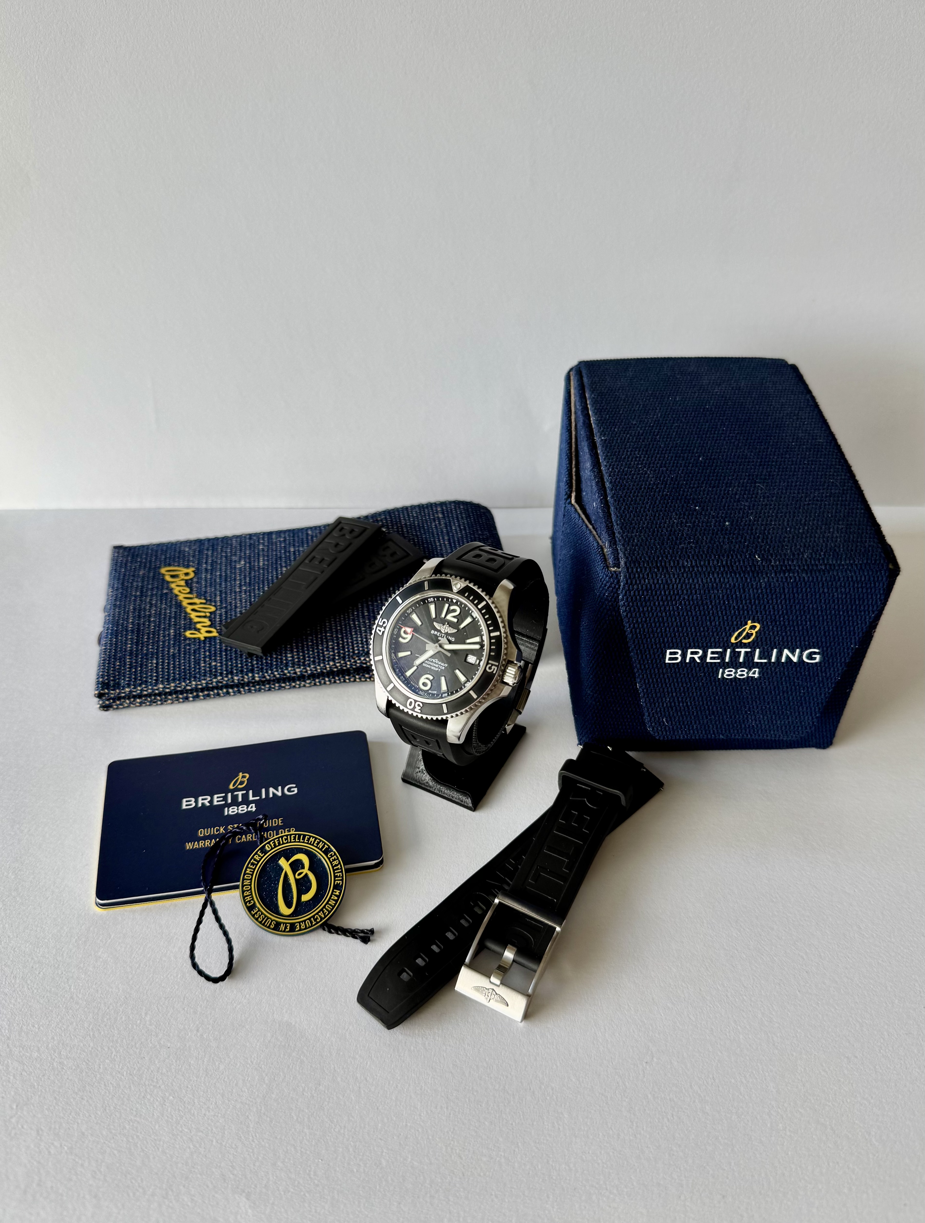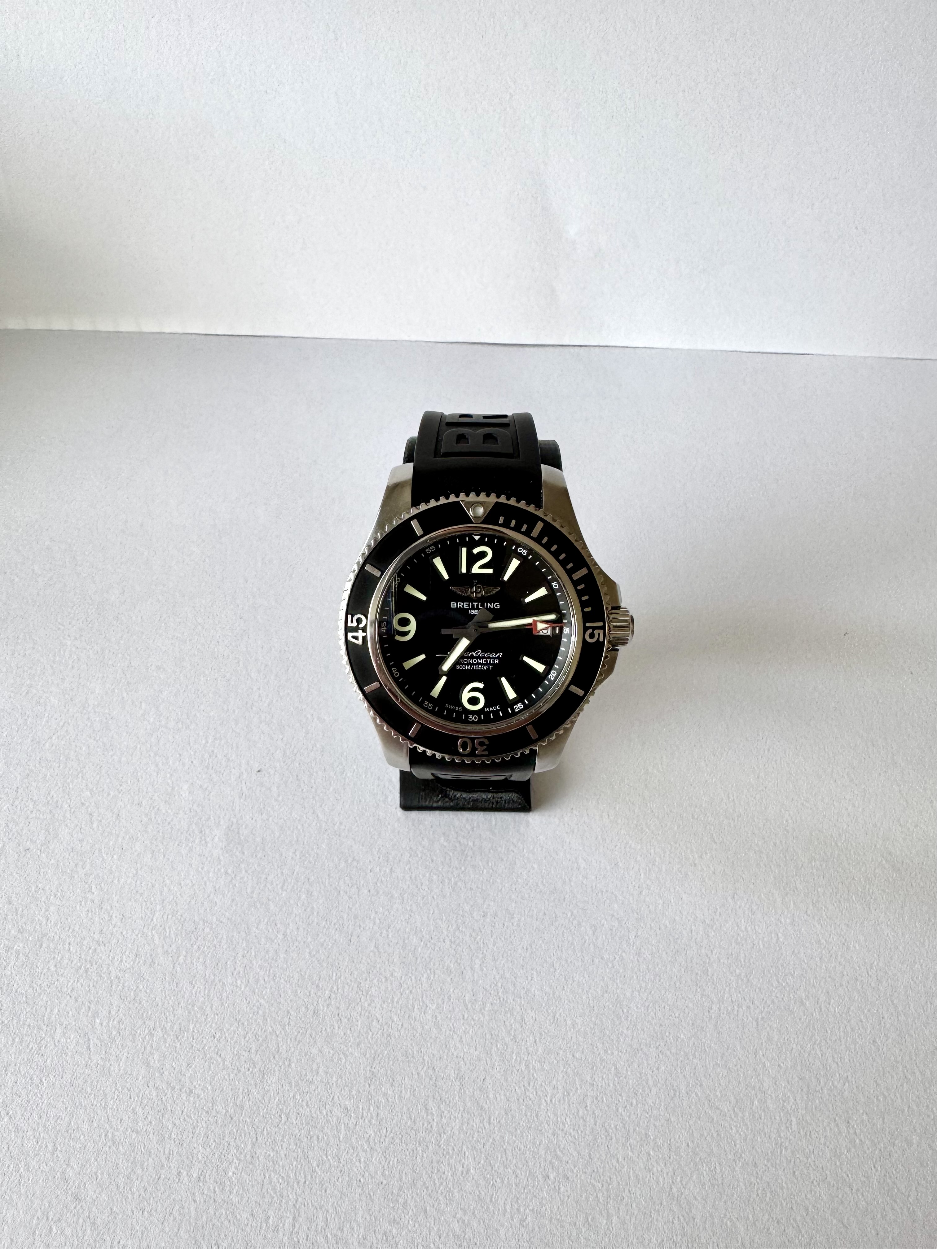 Hyvänkuntoinen ja tyylikäs Breitling Superocean 42 vuodelta 2022. Klassinen musta taulu ja kumiranneke tekevät kellosta monikäyttöisen niin arkeen kuin vapaa aikaan.