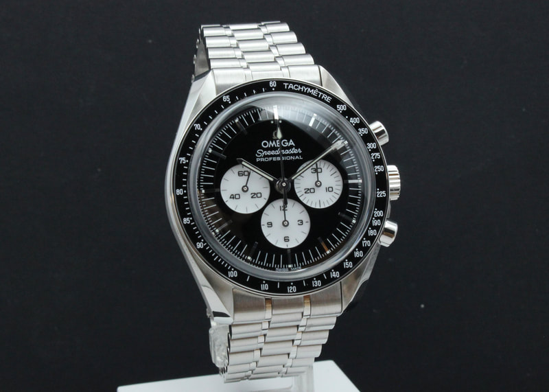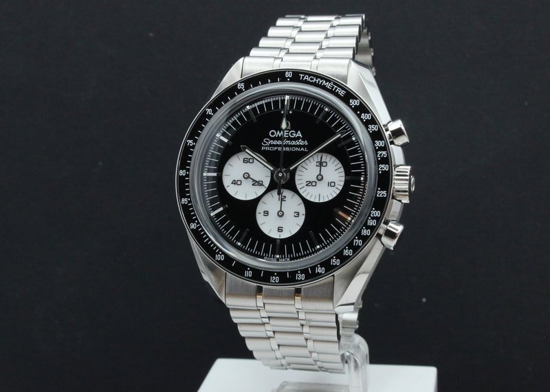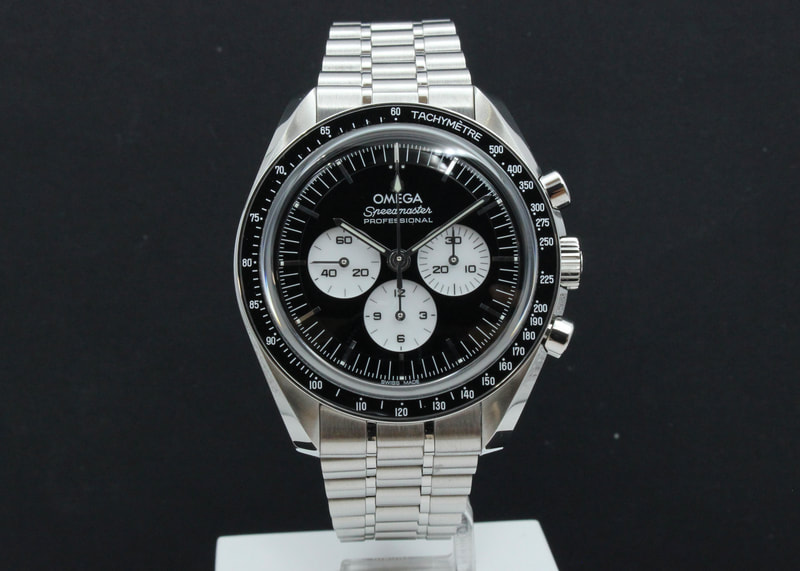 Erittäin upea ja vaikeasti saatava Omega Speedmaster uutuusmalli ''Reverse Panda'', jossa todella upea kiiltävän musta kellotaulu, valkoisilla sandwich subdialeilla sekä musta keraaminen bezel. Koneistona uusin METAS 3861 manuaalivetoinen koneisto. Kello on ostettu uutena tammikuussa 2026, joten valmistajan takuu voimassa 1/2031 asti sekä AD-liike tarjoaa yhden ekstravuoden 1/2032 asti. Mukaan boksit, manuaali, master chronometer- ja takuukortit sekä lisätakuulappu. Ovh. 10 600€