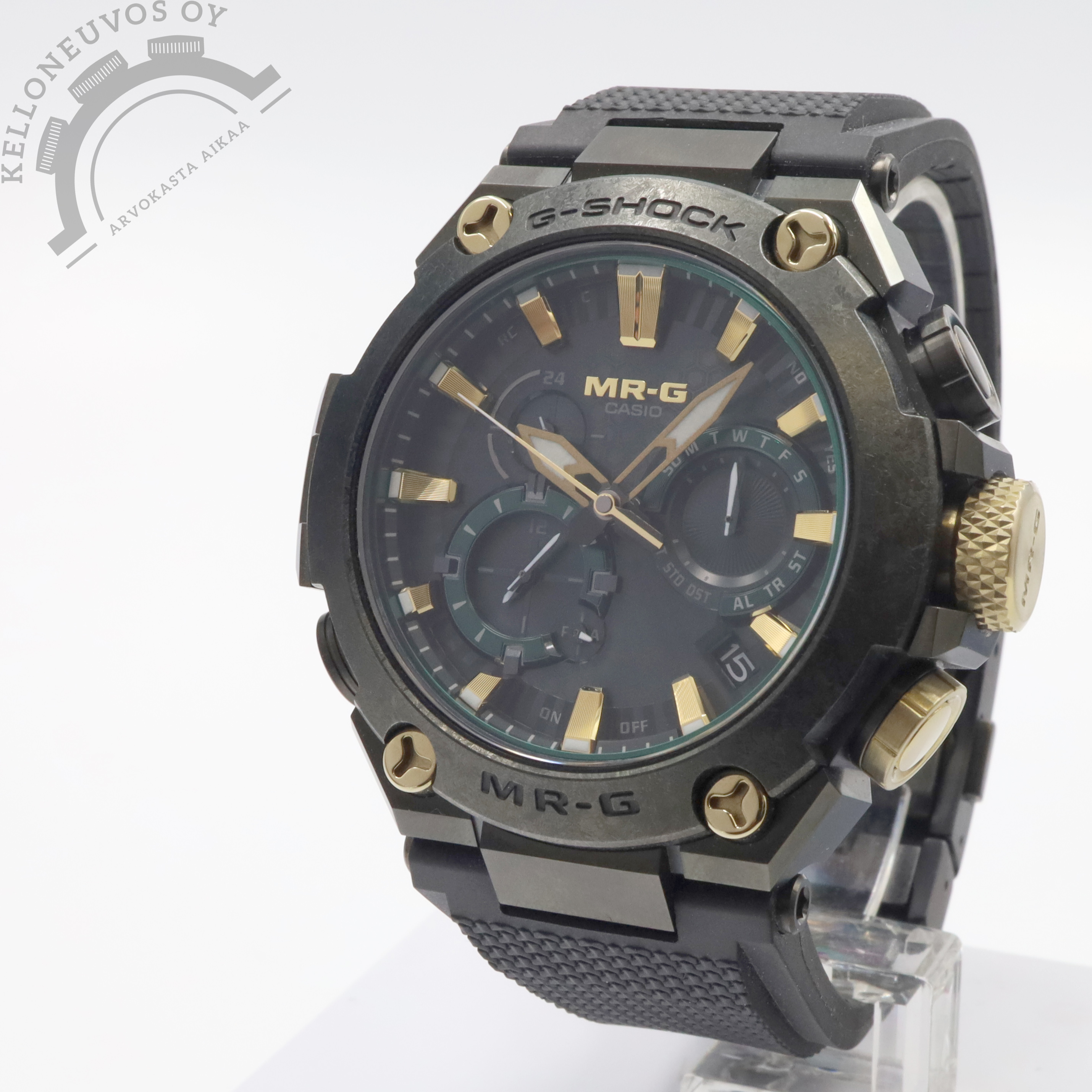 Kelloneuvos Oy – Arvokelloja turvallisesti ja asiantuntevasti jo vuodesta 2016! Toimistomme sijaitsee Turun ydinkeskustassa Kivikartanon kiinteistössä jonne olet aina tervetullut kaupoille. Casio G-Shock MR-G MRG-B2000RG-3ADR 2 450 € / Vaihto. Kellot ostettavissa suoraan myös verkkokaupastamme. Tarjolle Casio G-Shock jossa toimintoja enemmän kuin laki sallii. Tämä kello pysyy varmasti ajassa paikasta riippumatta GPS-paikannuksen sekä radioaaltoja yhdistämällä. Paristojen vaihdostakaan ei tarvitse huolta kantaa koska se saa virtansa auringon valosta. Jykevä titaaninen kuori laadukkaalla kumirannekkeella ja titaanisoljella varusteltuna. Ja vaikka kellolla on kokoa painaa se silti ainoastaan 138g. Full set, kellon takuukortti on päivätty kotimaisen jälleenmyyjän toimesta 3/2026. Uuden ovh. 3600e. Kumiranneketta lyhennetty niin että se mahtuu max 19cm ranteeseen. Malli: MRG-B2000RG-3ADR Kuoren halkaisija: 54,7 x 49,8mm Kuoren paksuus: 16,9mm Koneisto: Solar Vesitiiviys: 200m Takuu: Valmistajan takuu voimassa 3/2028 asti Vaihdot OK. Yhteystiedot: jesse@kelloneuvos.fi 045-6384734 Y-tunnus: 2747261-4 Kaupat hoituu turvallisesti ja helposti toimistollamme Turun keskustassa tai sovittaessa todella joustavasti toisaalla, postitse aina ilmainen sekä vakuutettu toimitus ympäri Suomen. Kaikki sivuiltamme löytyvät kellot ovat omaa varastoamme ja näin ollen välittömästi saatavilla. Katso kaikki myynnissä olevat kellot: https://kelloneuvos.fi/ Seuraa: www.facebook.com/kelloneuvos www.instagram.com/kelloneuvos #Kelloneuvos