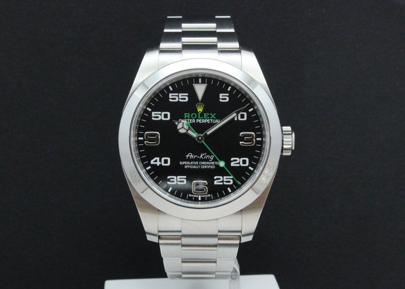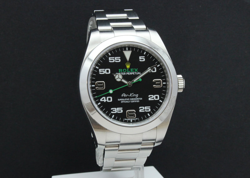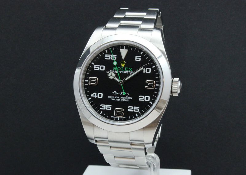 Huippukuntoinen ja vähän käytetty tuotannosta poistunut Rolex Air-King 116900, joka on ostettu uutena toukokuussa 2020. Kellon 3131 automaattikoneisto on täyshuollettu 6/2025 RSC-huollossa (Rolex Service Center). Mukaan boksit, manuaalit, hangtag, takuukortti ja huoltotodistus 6/2025.