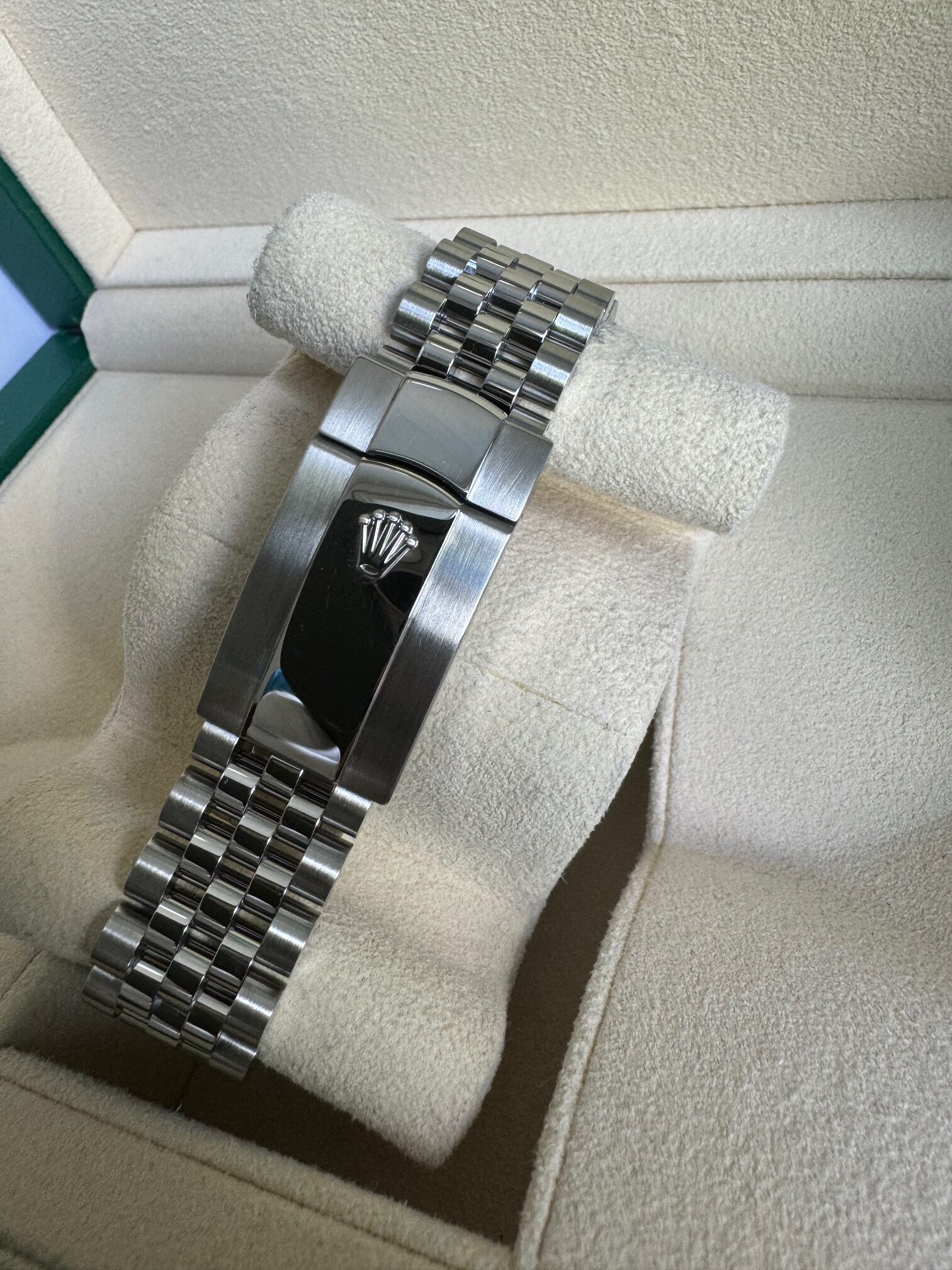 Hieno Rolex klassikko… kokoa on 41 mm, jubilee ranneke ja valkokultainen kehä. Rolex cal.3235- automaattikoneistolla on 70 tunnin käyntivara ja kello kestää 10 ATM (100m) paineen. Kellon koneisto on täyshuollettu takuuseen 7/2023 ja huoltotakuu on päällä 7/2025 asti.